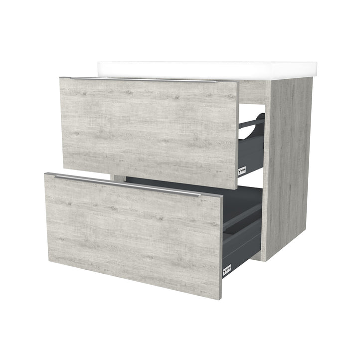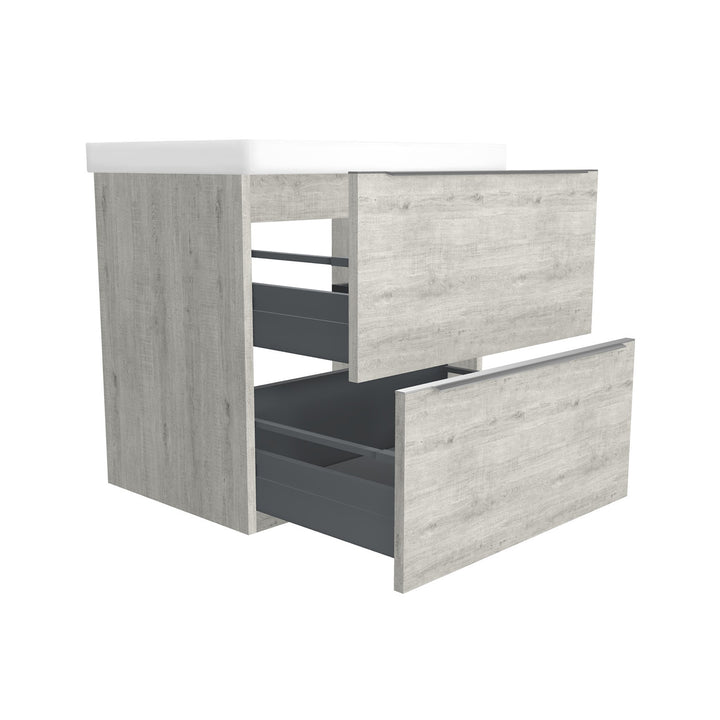 Frankfurt 65 cm Lissabon - Onderkast MDF Softclose Semi handgreep 2 lades met Keramische Wastafel 1 kraangat - Wastafelmeubel Met Frame Wastafels