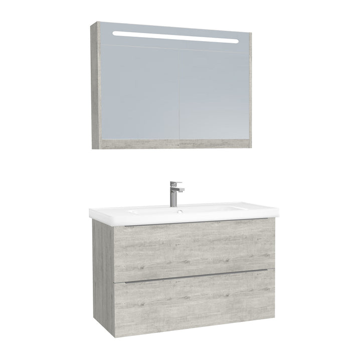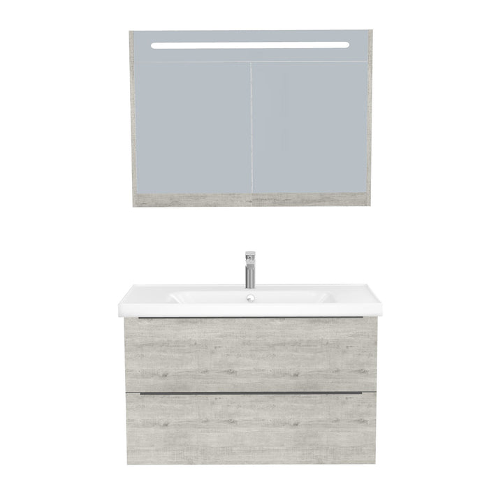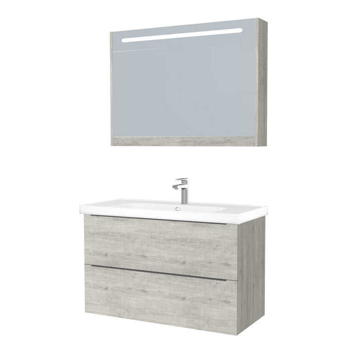 Frankfurt Badkamermeubel Set 100 cm Lissabon - Onderkast MDF Softclose Semi handgreep 2 lades met Keramische Wastafel 1 kraangat en Badkamerspiegelkast met Led-verlichting