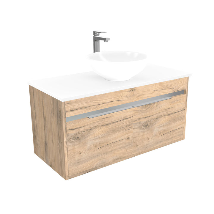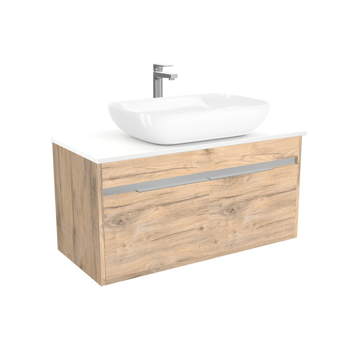 Kassel Badkamermeubel 100 cm Dorado - Onderkast MDF - Softclose semi handgreep 2 deuren Inclusief keramische waskom met wastafelblad