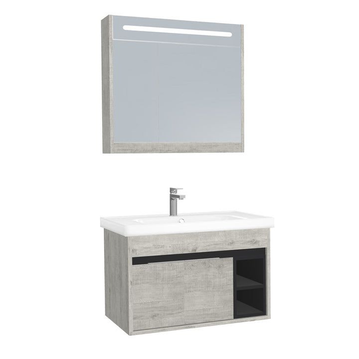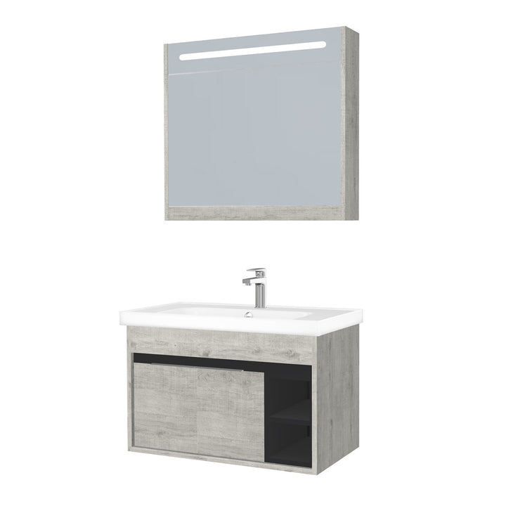 Aachen Badkamermeubel Set 80 cm Lissabon Onderkast MDF Softclose Semi handgreep 2 deuren met Keramische Wastafel 1 kraangat en Badkamerspiegelkast met Led-verlichting