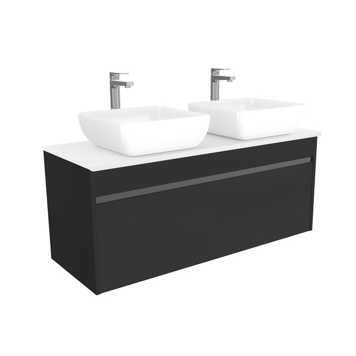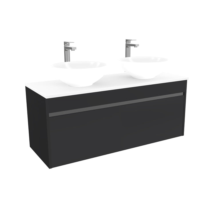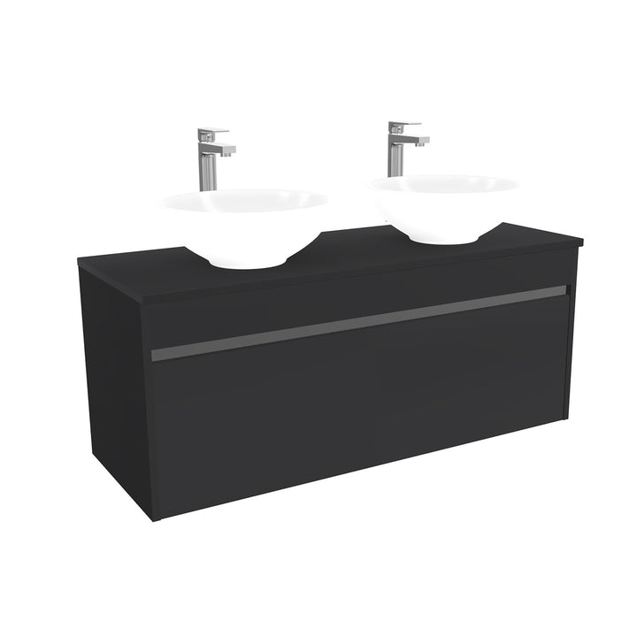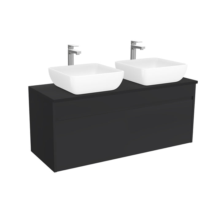 Amsterdam Badkamermeubel 120 cm Mat Zwart - Onderkast MDF - Softclose greeploos 2 lades Inclusief keramische waskom met wastafelblad