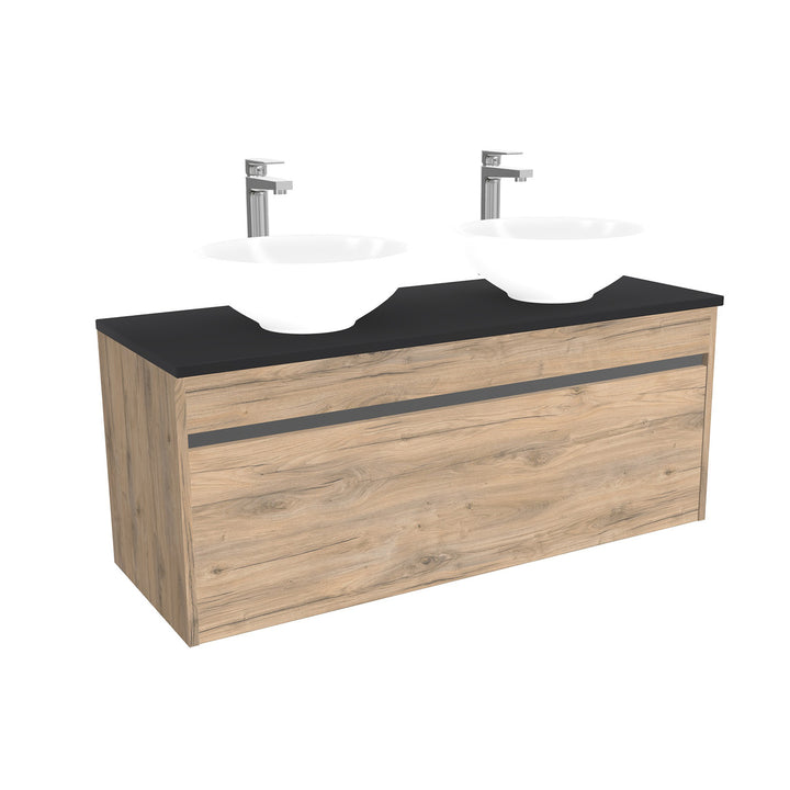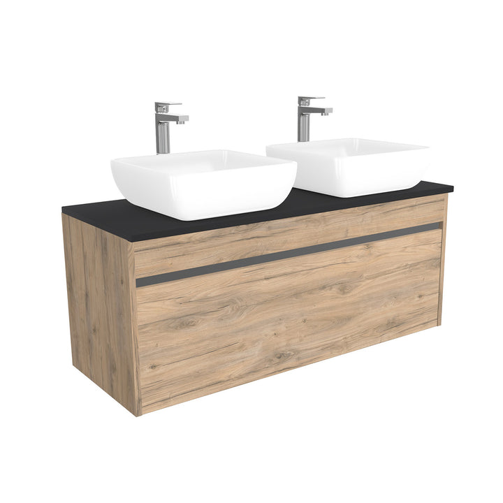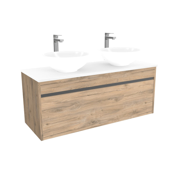 Amsterdam Badkamermeubel 120 cm Dorado - Onderkast MDF - Softclose greeploos 2 lades Inclusief keramische waskom met wastafelblad