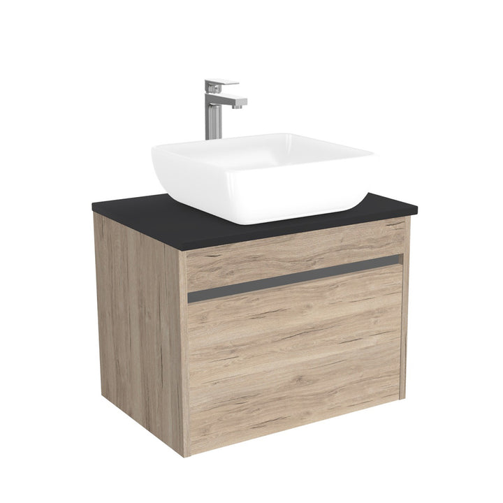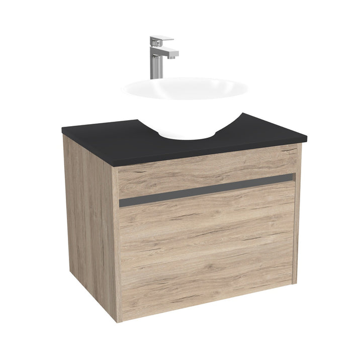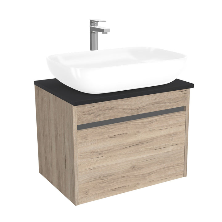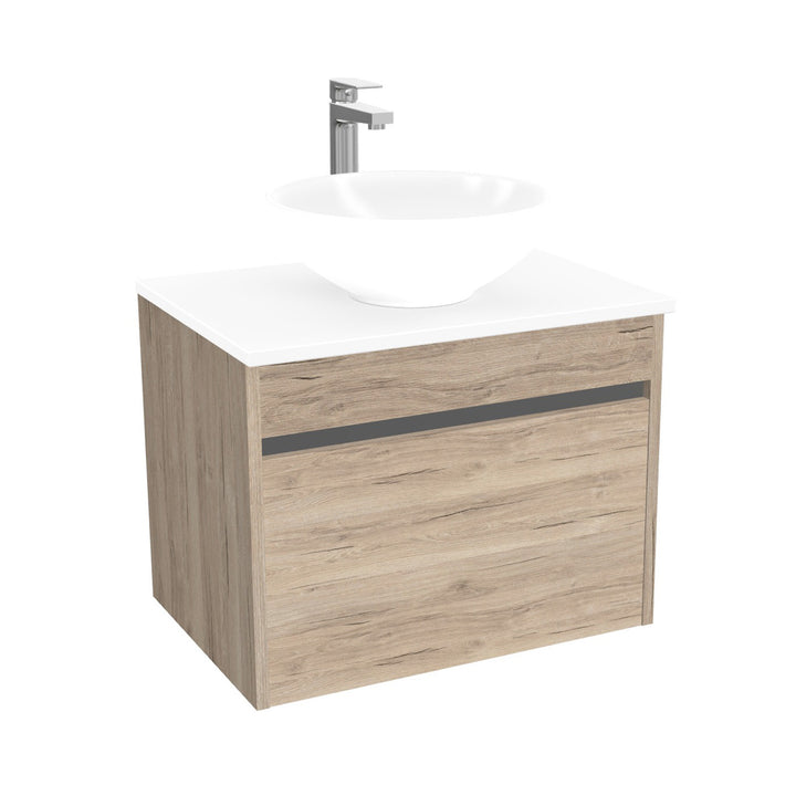 Amsterdam Badkamermeubel 65 cm Duitse Eik - Onderkast MDF - Softclose greeploos 2 lades Inclusief keramische waskom met wastafelblad