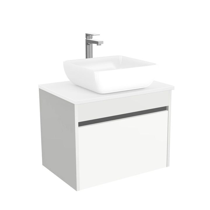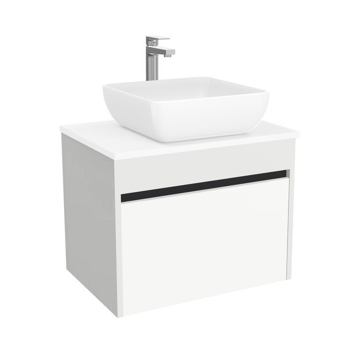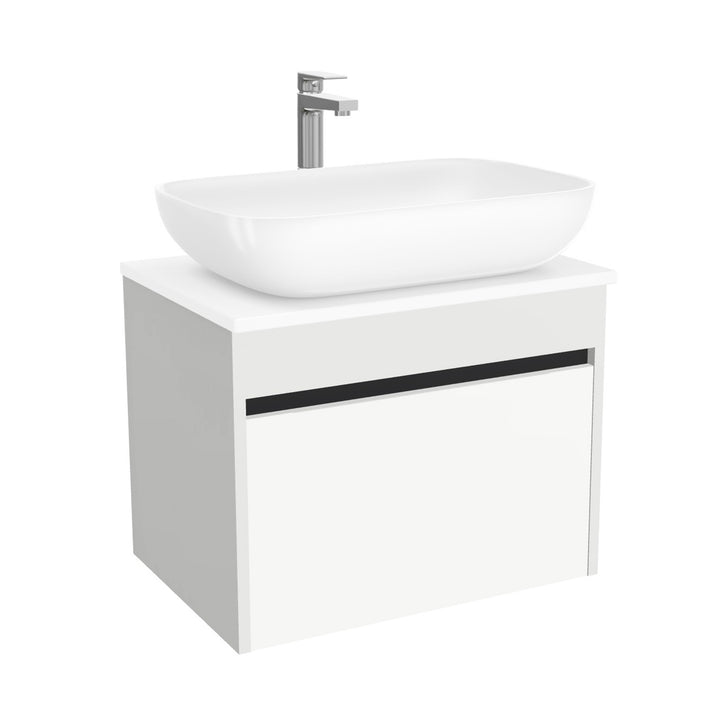Amsterdam Badkamermeubel 65 cm Hoogglans Wit - Onderkast MDF - Softclose greeploos 2 lades Inclusief keramische waskom met wastafelblad