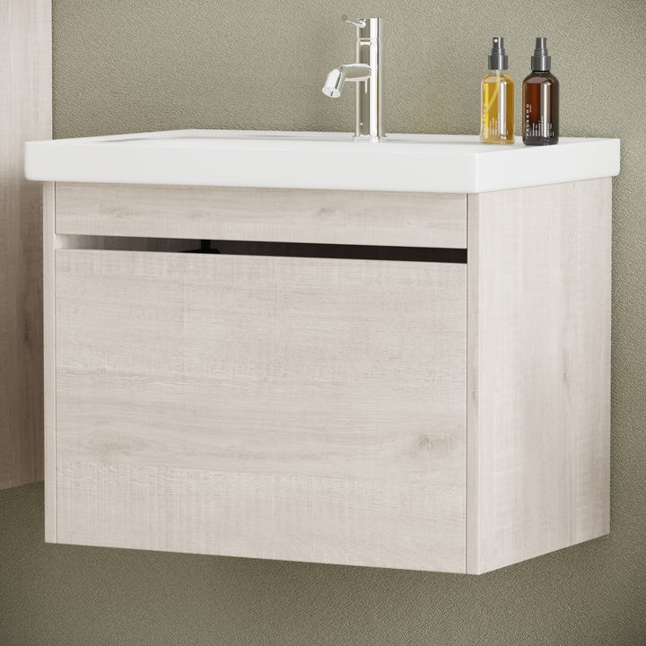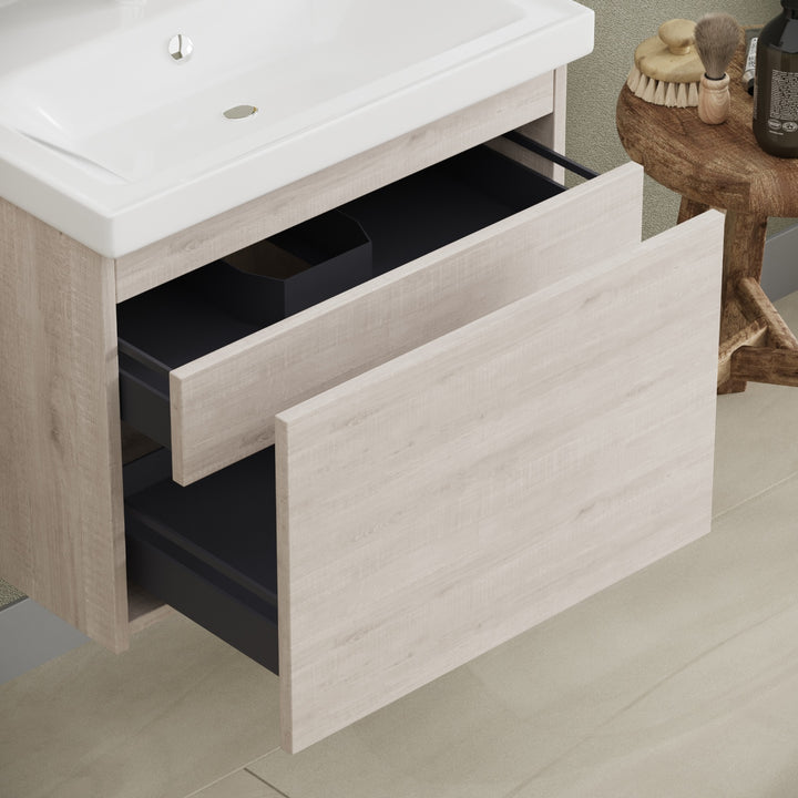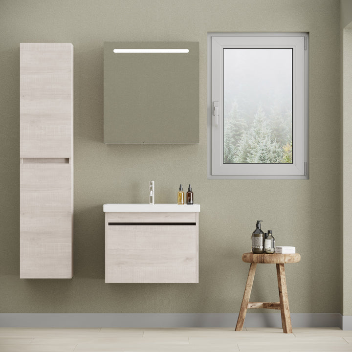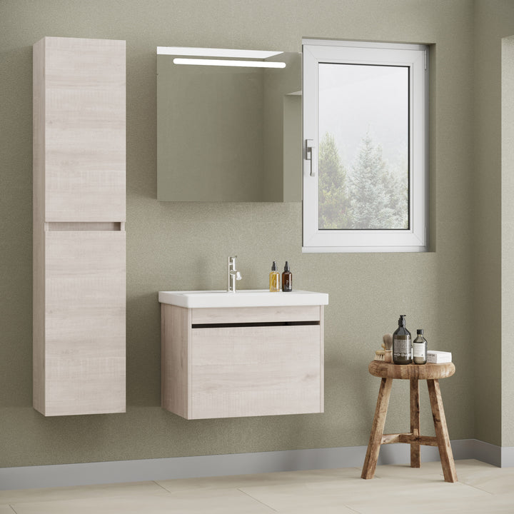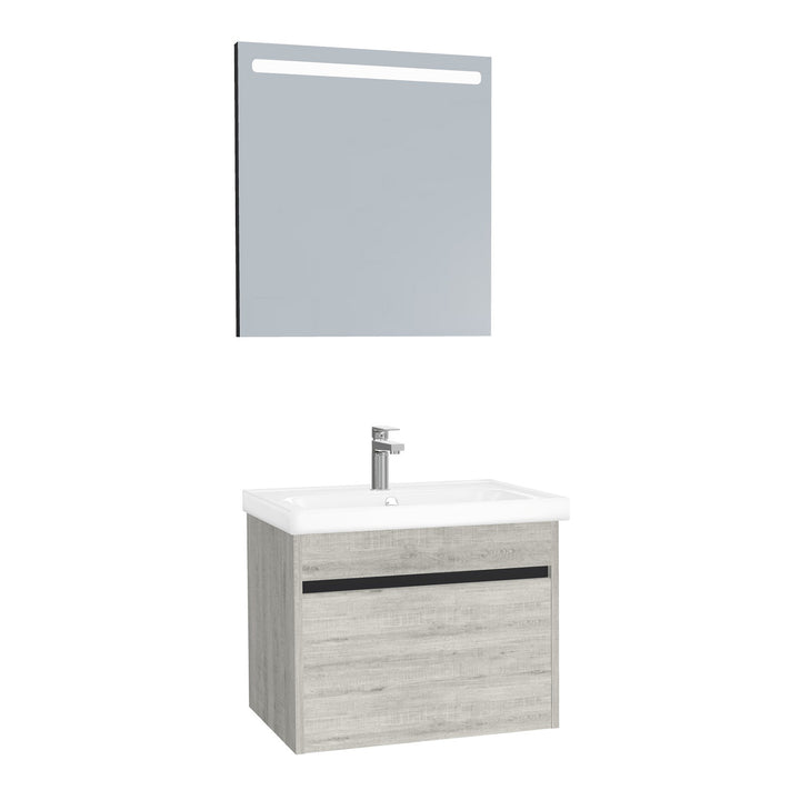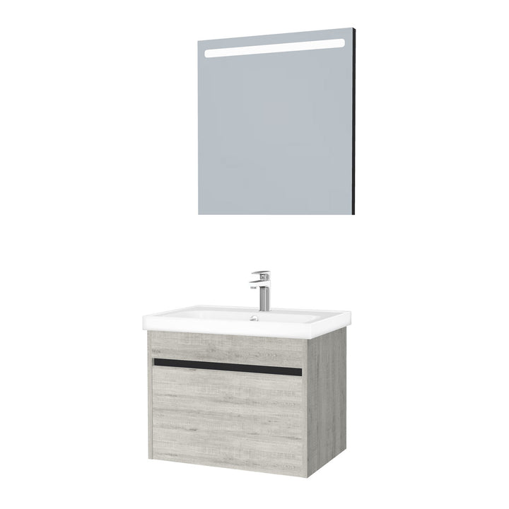 Amsterdam Badkamermeubel Set 65 cm Lissabon - Onderkast MDF Softclose Greeploos 2 lades met Keramische Wastafel 1 kraangat en Badkamerspiegel met Led-verlichting
