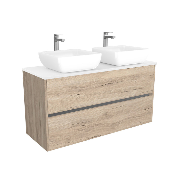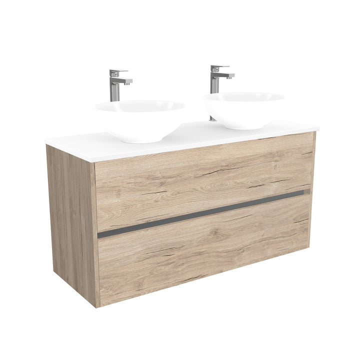 Berlin Badkamermeubel 120 cm Duitse Eik - Onderkast MDF - Softclose greeploos 2 lades Inclusief keramische waskom met wastafelblad