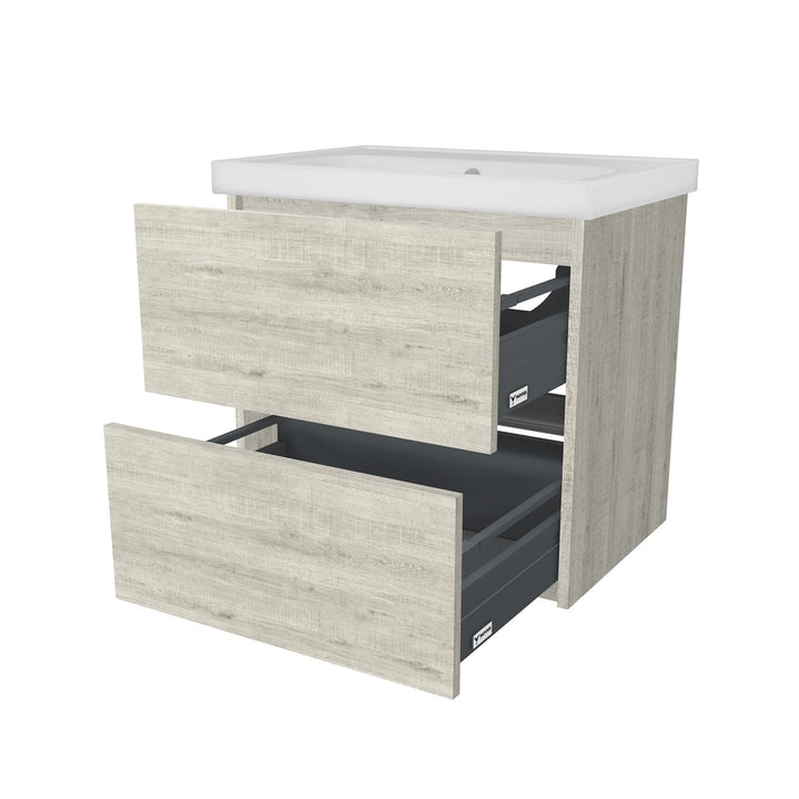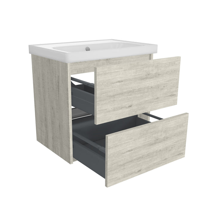 Berlin 65 cm Lissabon - Onderkast MDF Softclose Greeploos 2 lades met Keramische Wastafel 1 kraangat - Wastafelmeubel Met Frame Wastafels