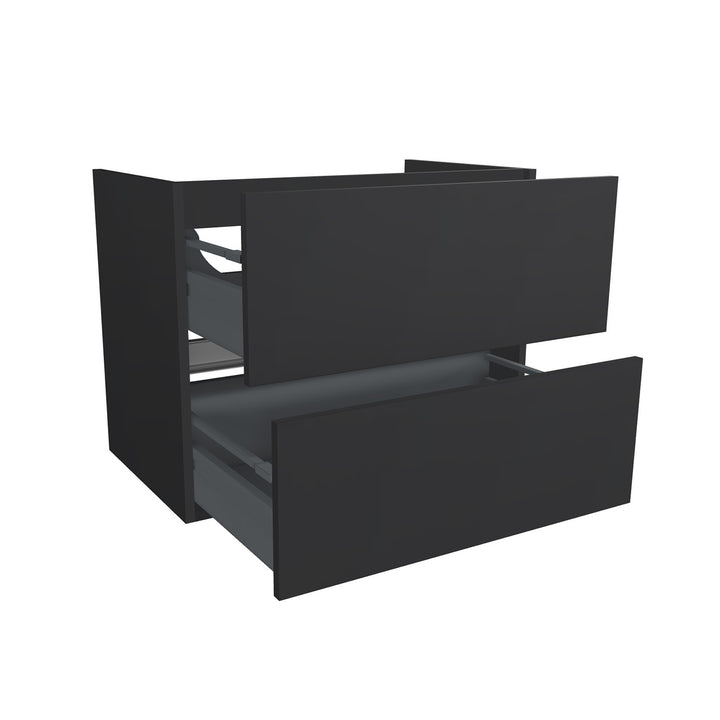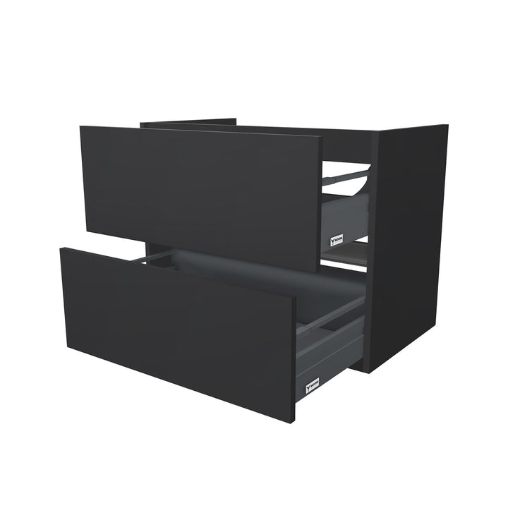Berlin 80 cm Mat Zwart - Onderkast MDF - Softclose greeploos 2 Lades Onder Elkaar - Wastafelmeubel Voor Waskom