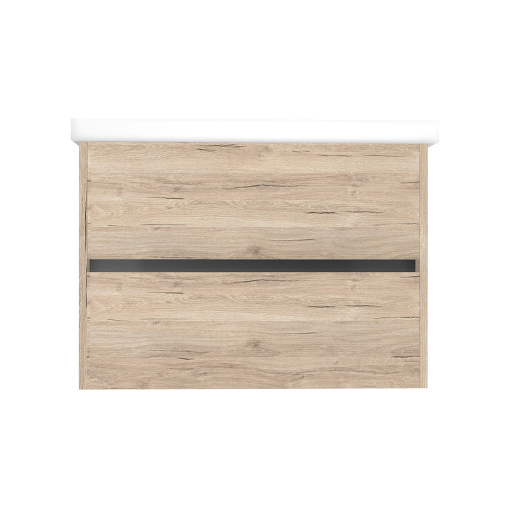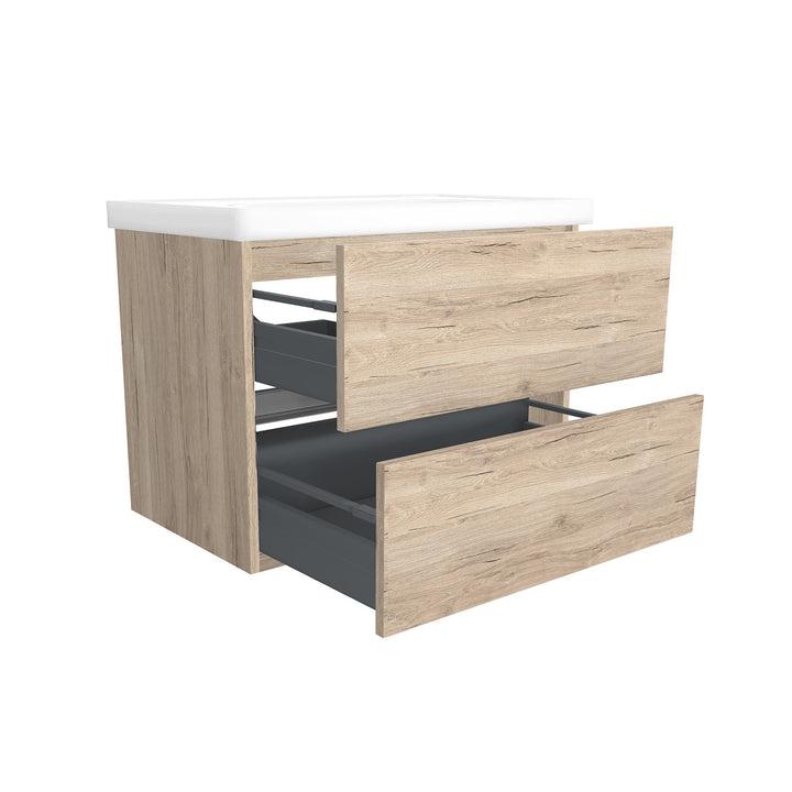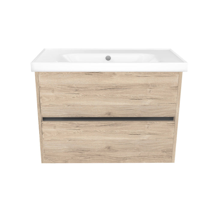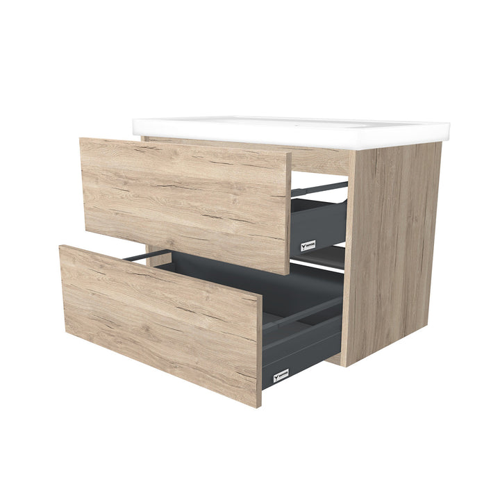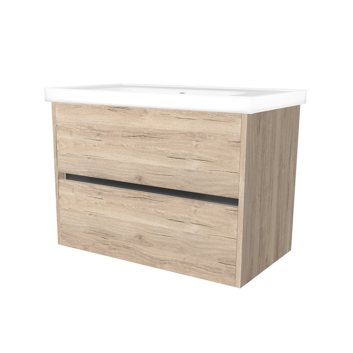 Berlin 80 cm Duitse Eik - Onderkast MDF Softclose Greeploos 2 lades met Keramische Wastafel 1 kraangat - Wastafelmeubel Met Frame Wastafels
