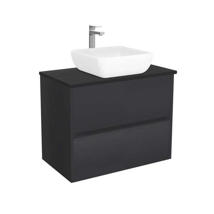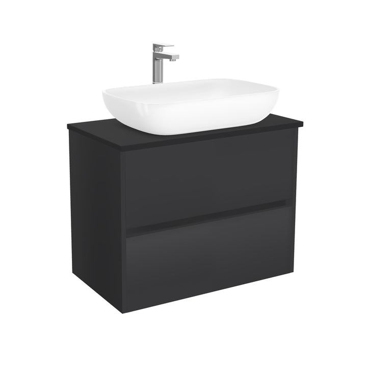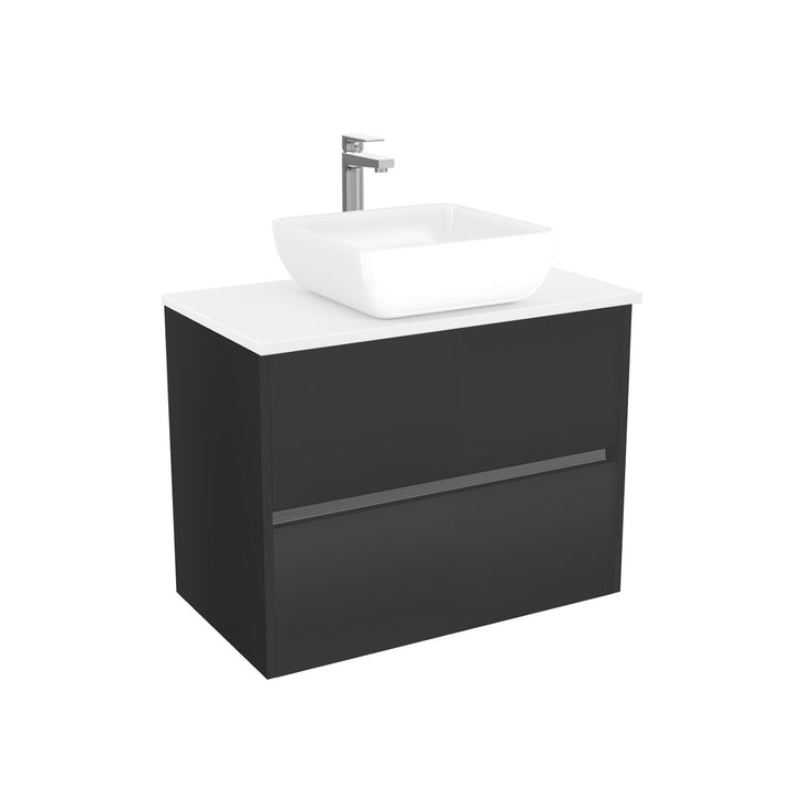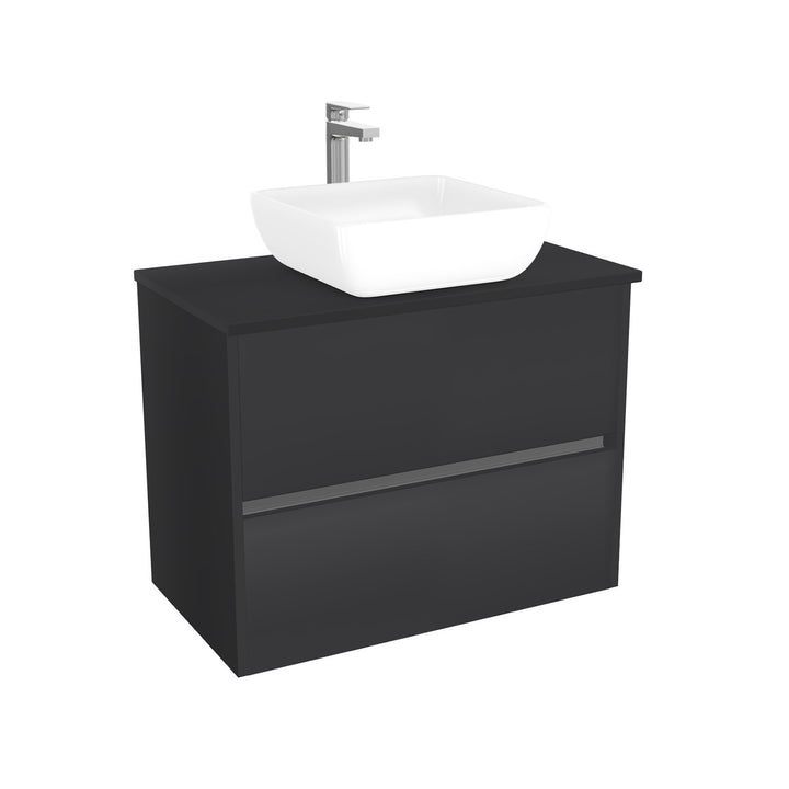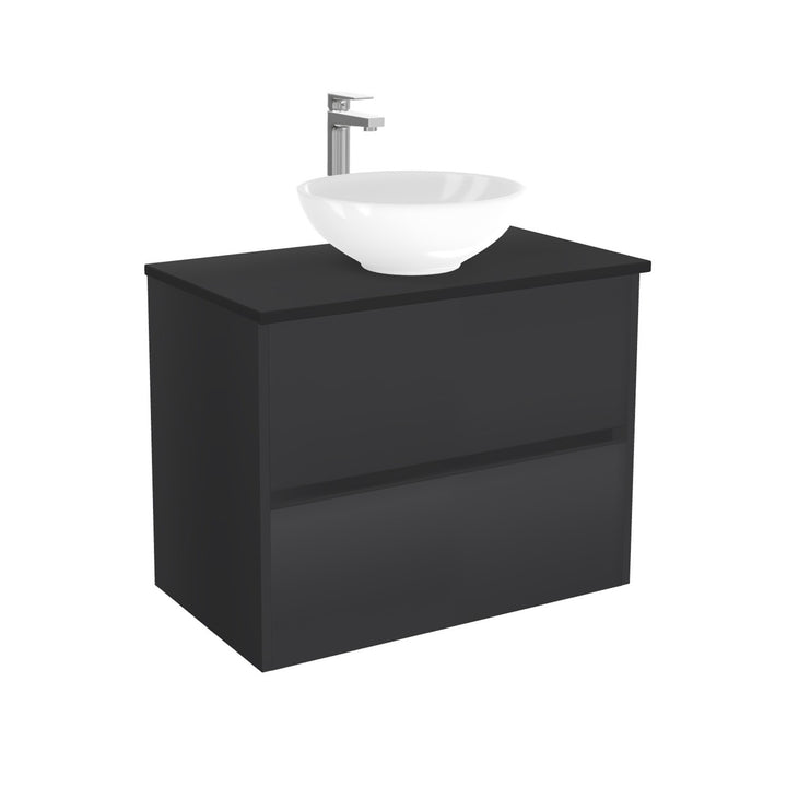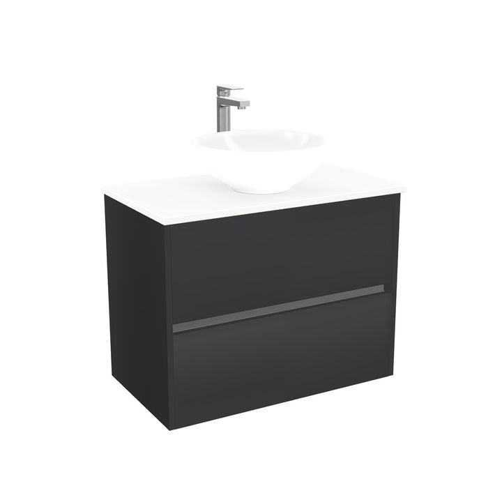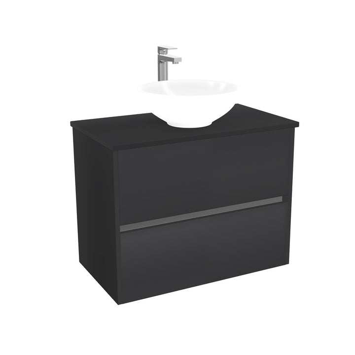Berlin Badkamermeubel 80 cm Mat Zwart - Onderkast MDF - Softclose greeploos 2 lades Inclusief keramische waskom met wastafelblad