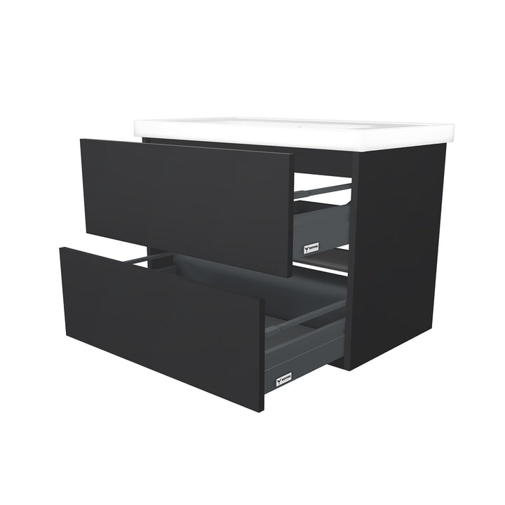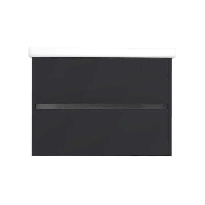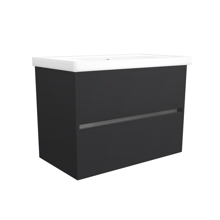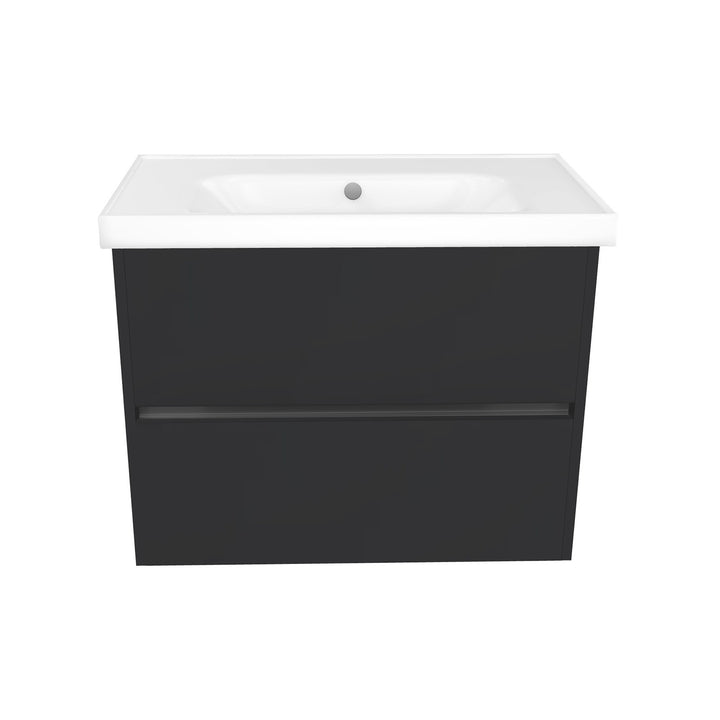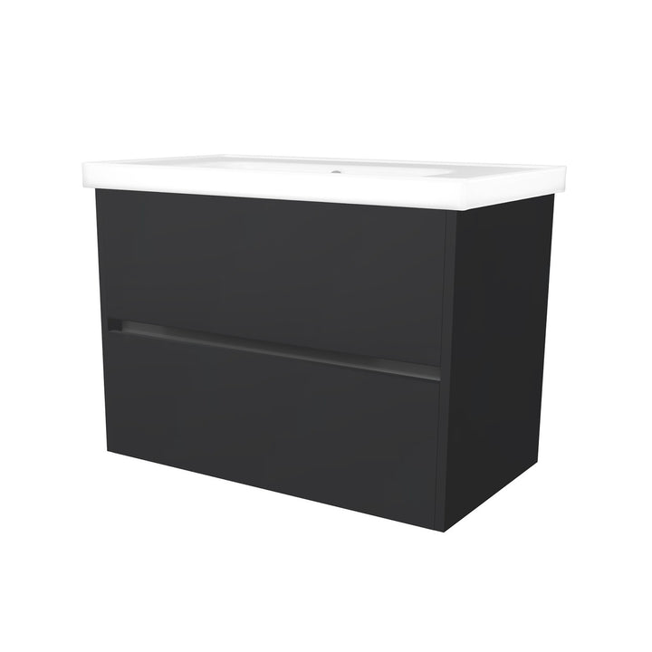 Berlin 80 cm Mat Zwart - Onderkast MDF Softclose Greeploos 2 lades met Keramische Wastafel 1 kraangat - Wastafelmeubel Met Frame Wastafels