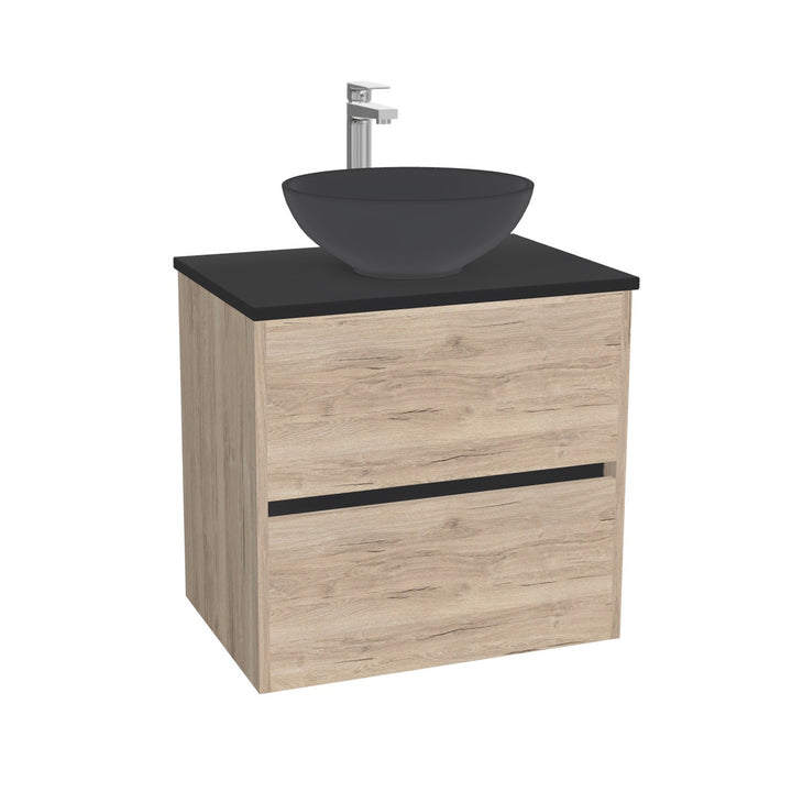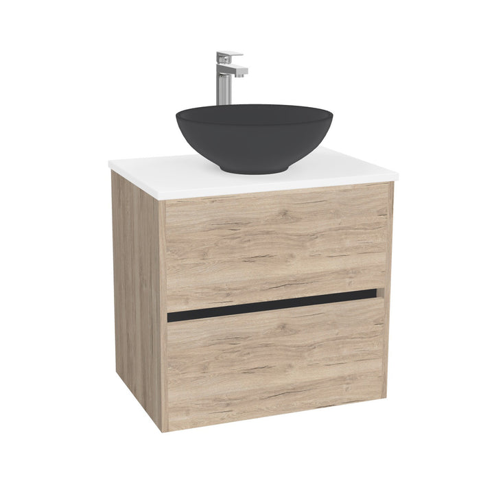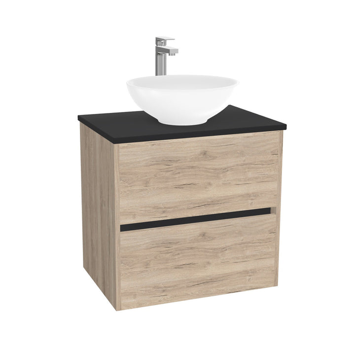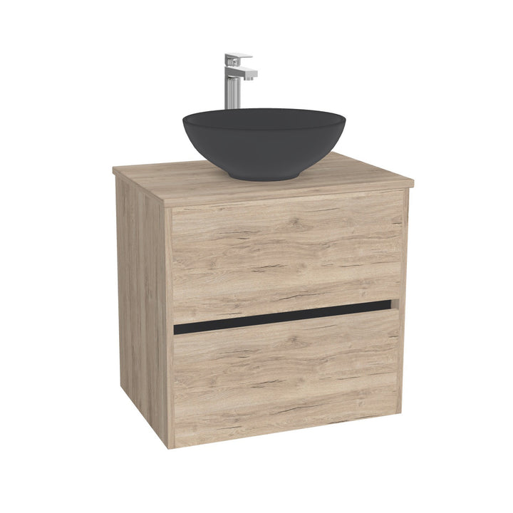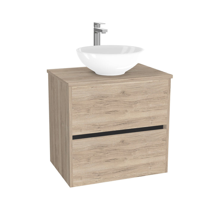 Berlin Badkamermeubel 65 cm Duitse Eik - Onderkast MDF - Softclose greeploos 2 lades Inclusief Toledo keramische waskom met wastafelblad