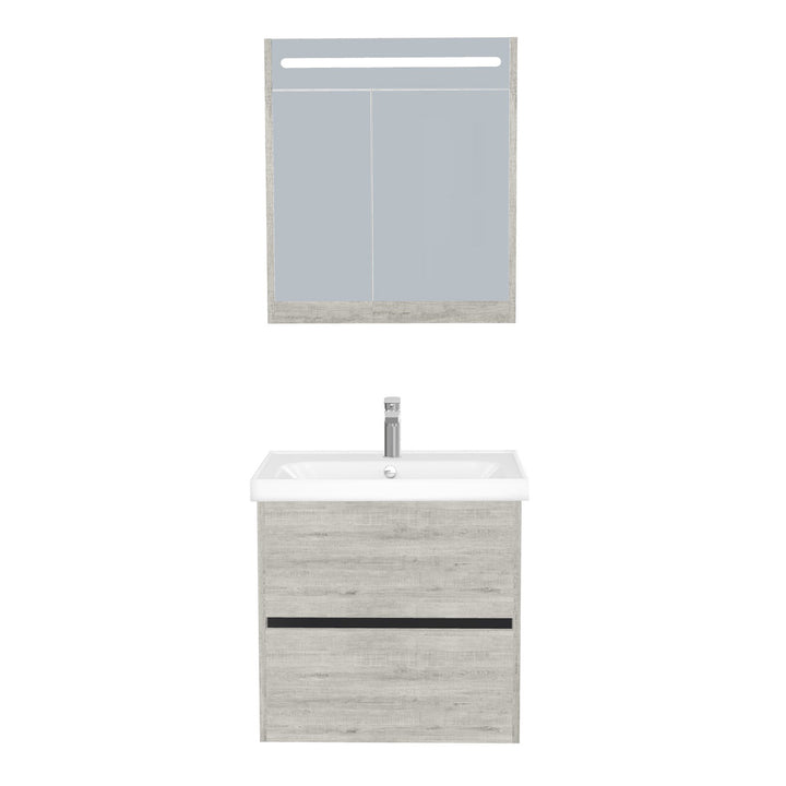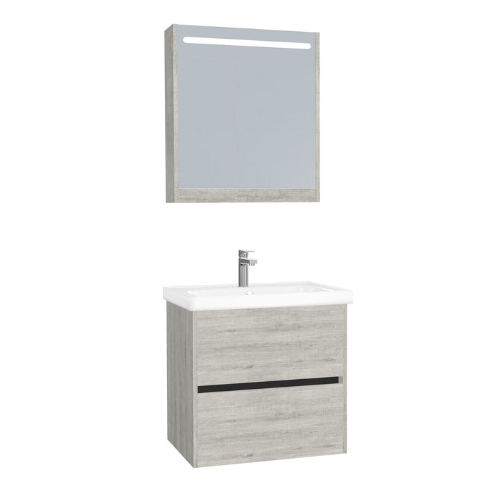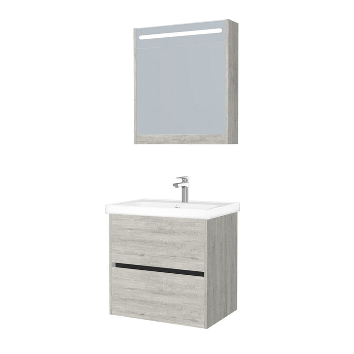 Berlin Badkamermeubel Set 65 cm Lissabon - Onderkast MDF Softclose Greeploos 2 lades met Keramische Wastafel 1 kraangat en Badkamerspiegelkast met Led-verlichting