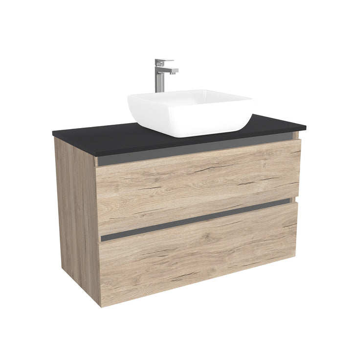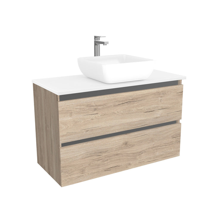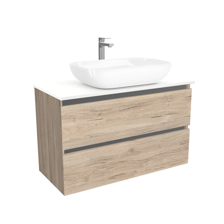 Bonn Badkamermeubel 100 cm Duitse Eik- Onderkast MDF - Softclose greeploos 2 lades Inclusief keramische waskom met wastafelblad