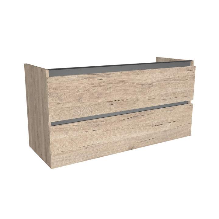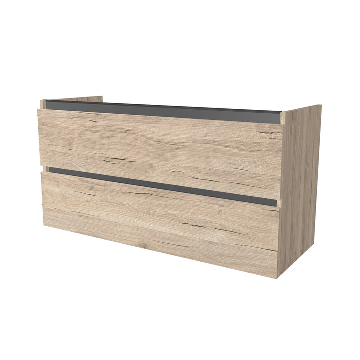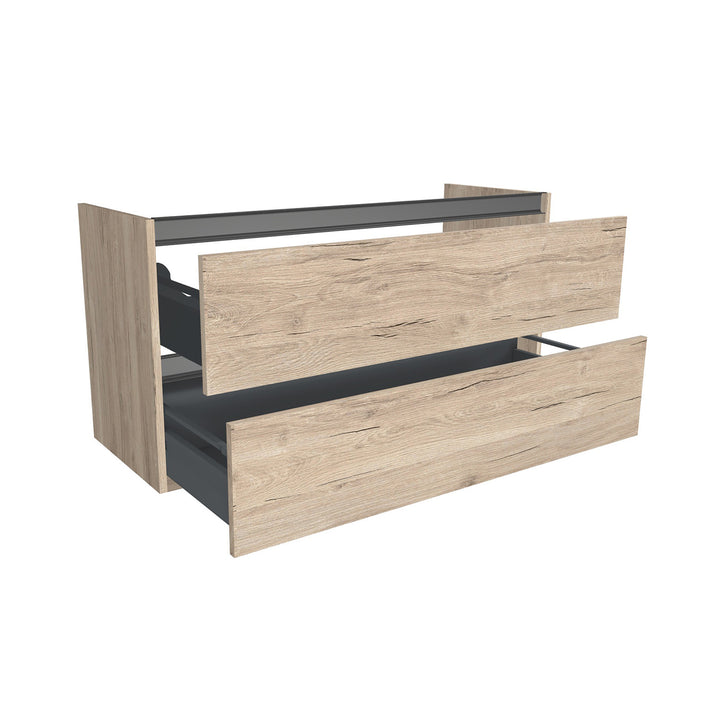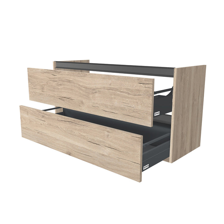 Bonn 120 cm Duitse Eik - Onderkast MDF - Softclose greeploos - 2 Lades Onder Elkaar - Wastafelmeubel Voor Waskom