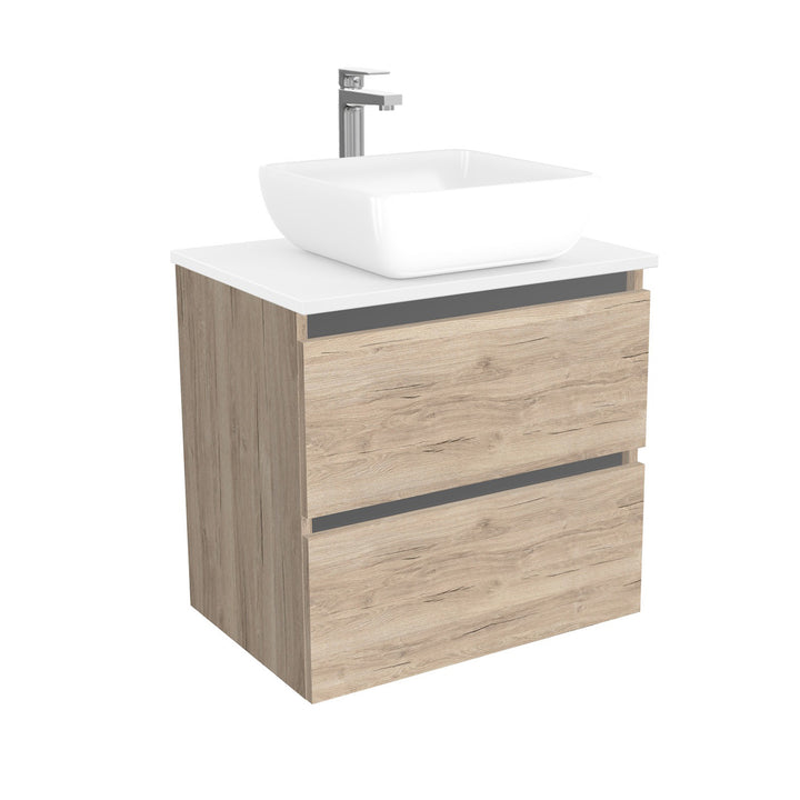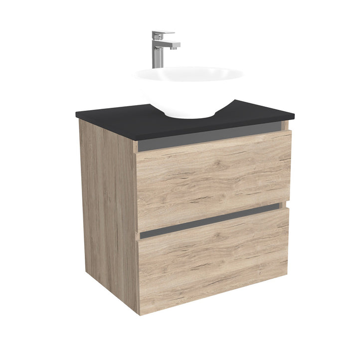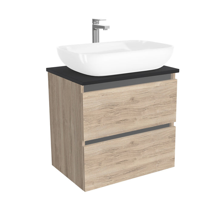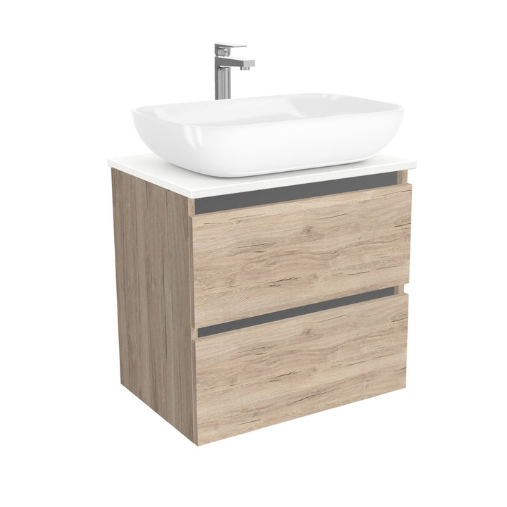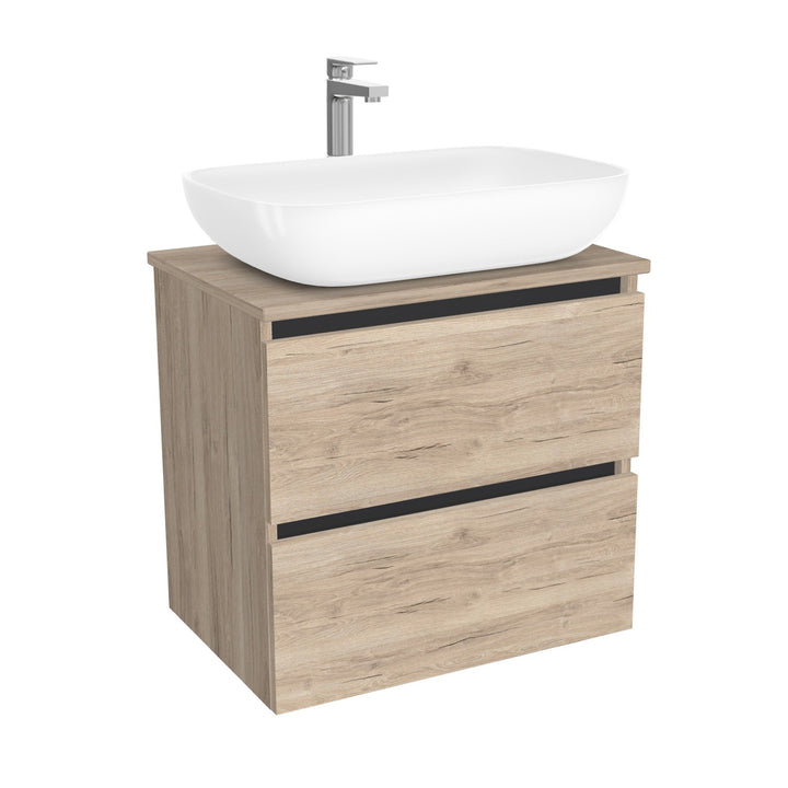 Bonn Badkamermeubel 65 cm Duitse Eik - Onderkast MDF - Softclose greeploos 2 lades Inclusief keramische waskom met wastafelblad