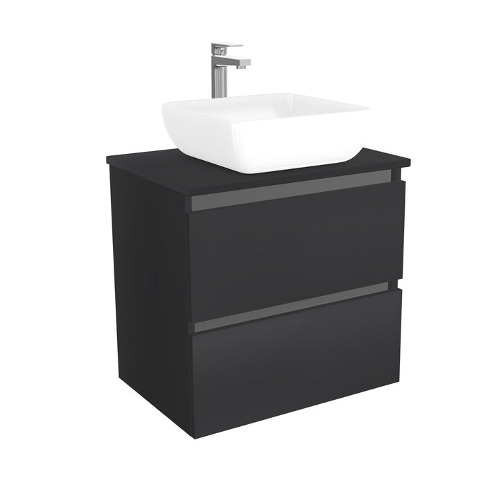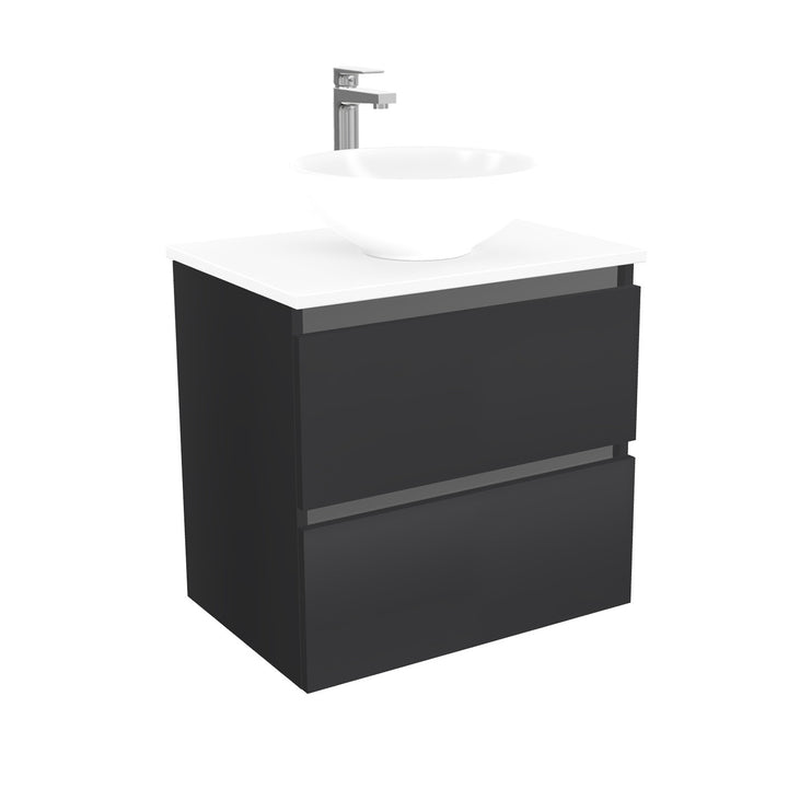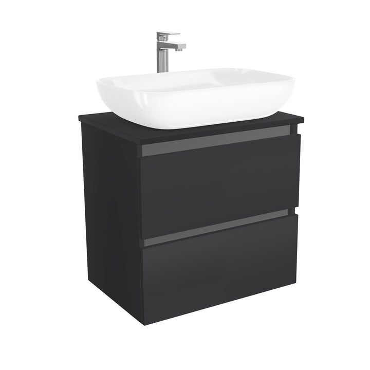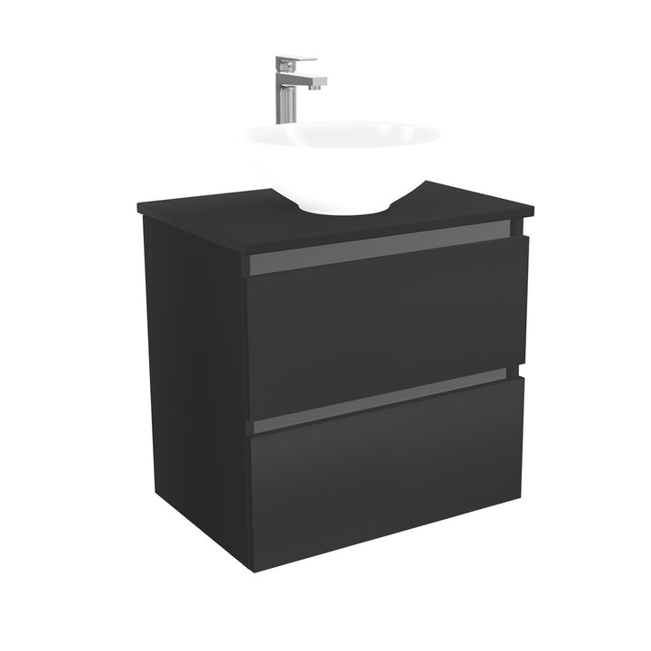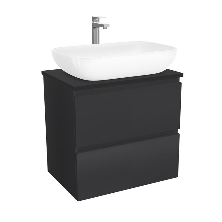 Bonn Badkamermeubel 65 cm Mat Zwart - Onderkast MDF - Softclose greeploos 2 lades Inclusief keramische waskom met wastafelblad