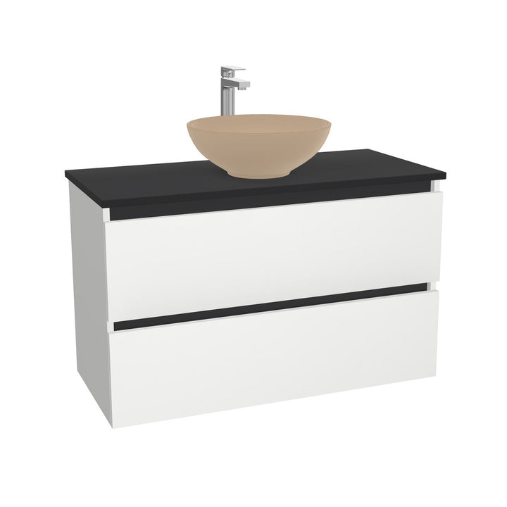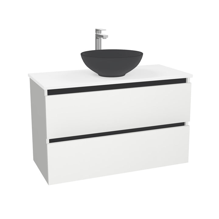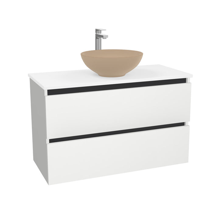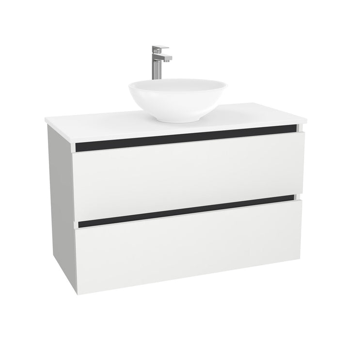 Bonn Badkamermeubel 100 cm Hoogglans Wit - Onderkast MDF - Softclose greeploos 2 lades Inclusief Toledo keramische waskom met wastafelblad