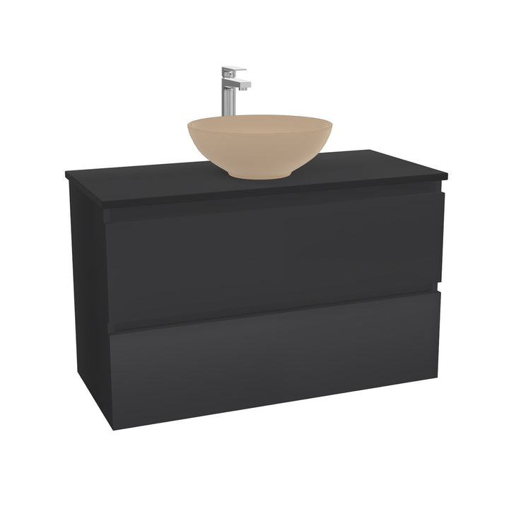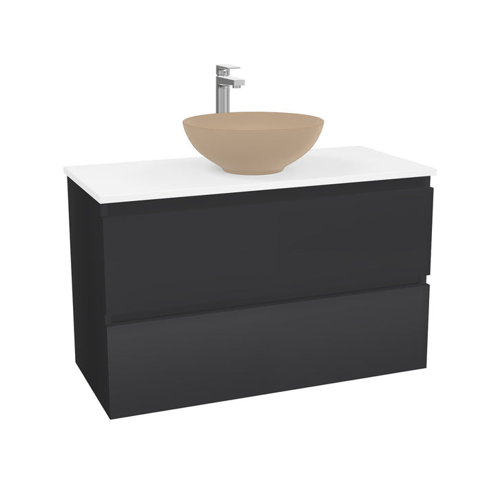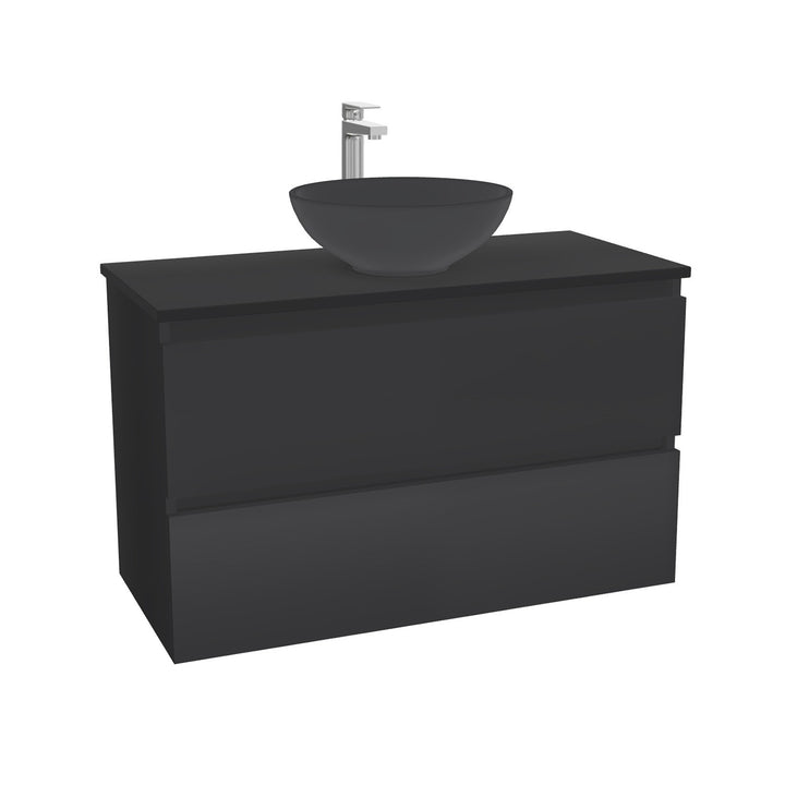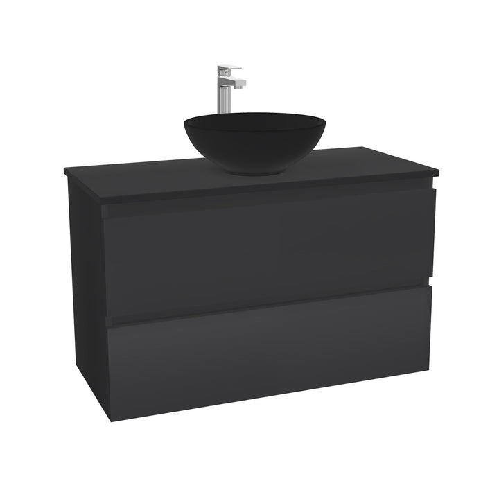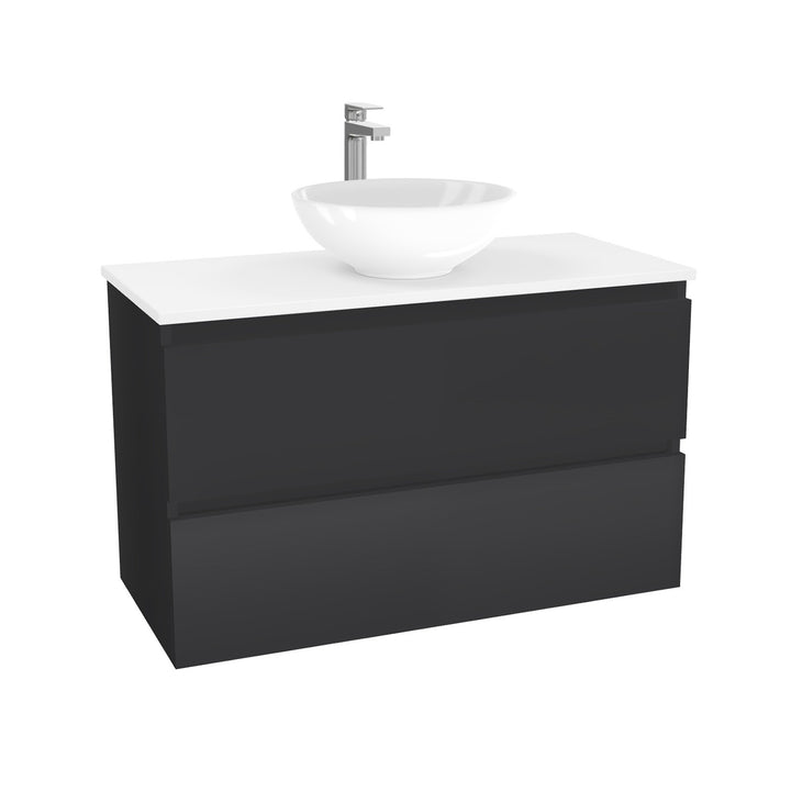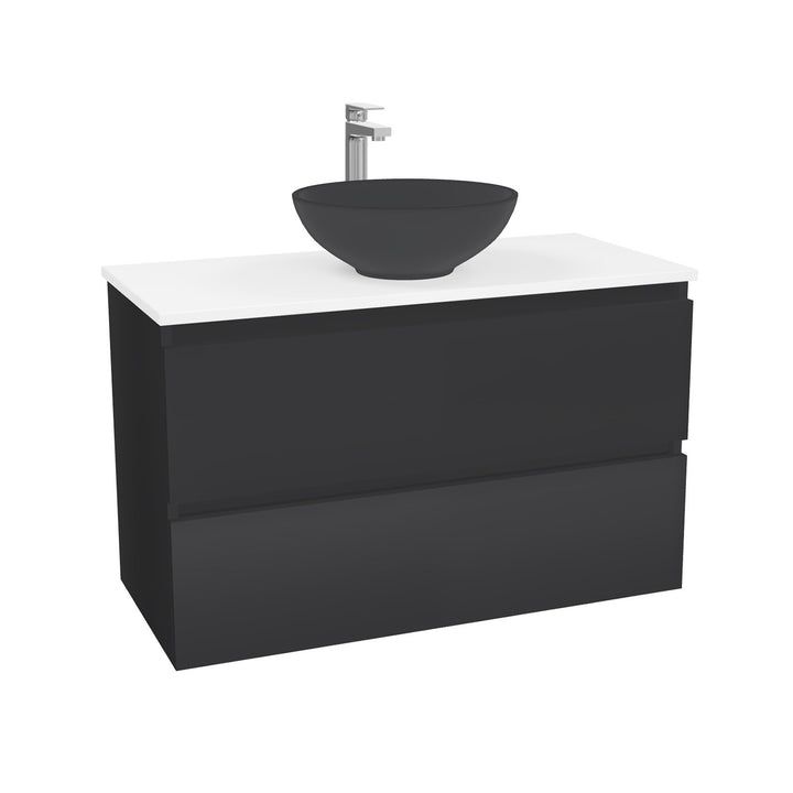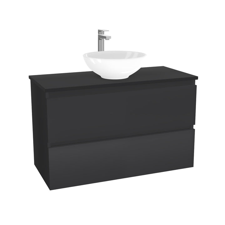 Bonn Badkamermeubel 100 cm Mat Zwart - Onderkast MDF - Softclose greeploos 2 lades Inclusief Toledo keramische waskom met wastafelblad