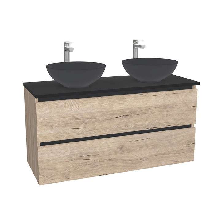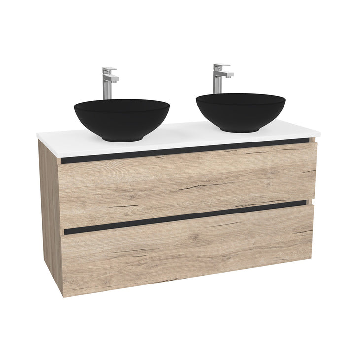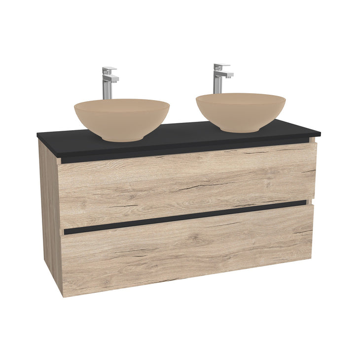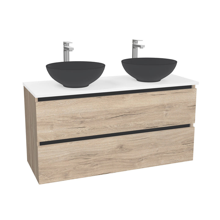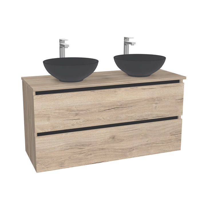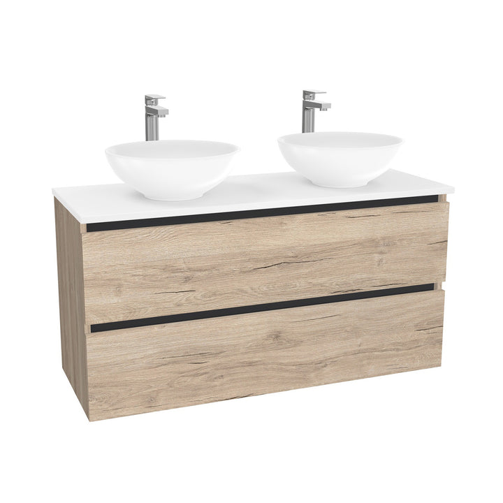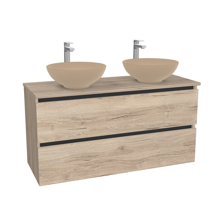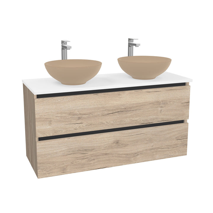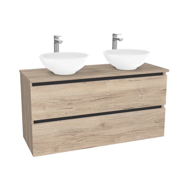 Bonn Badkamermeubel 120 cm Duitse Eik - Onderkast MDF - Softclose greeploos 2 lades Inclusief Toledo keramische waskom met wastafelblad