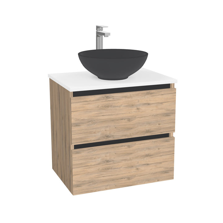 Bonn Badkamermeubel 65 cm Dorado - Onderkast MDF - Softclose greeploos 2 lades Inclusief Toledo keramische waskom met wastafelblad