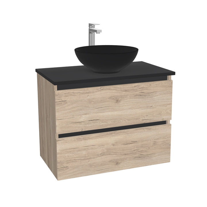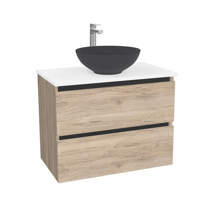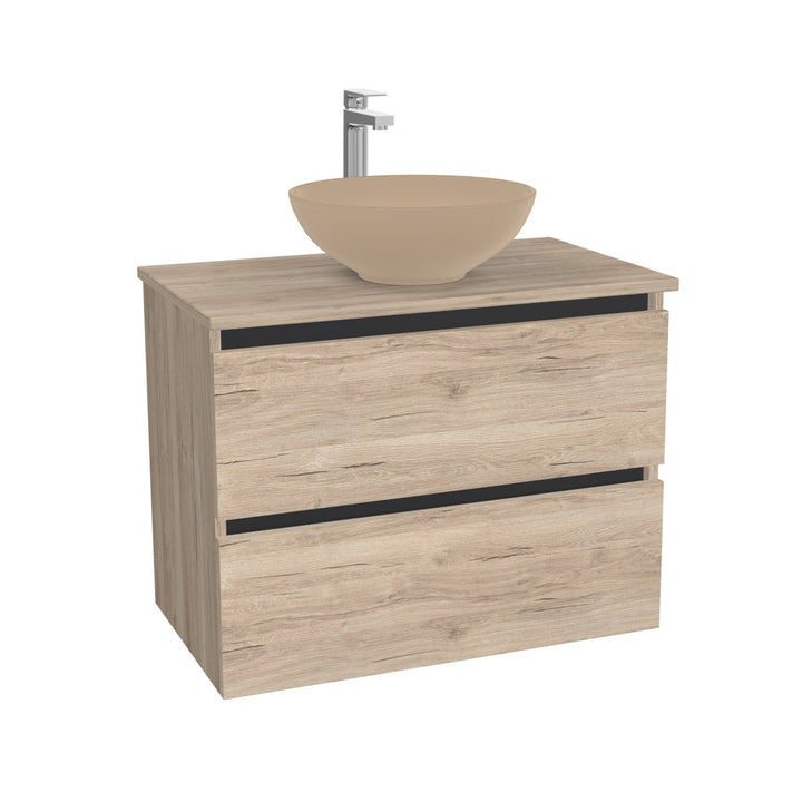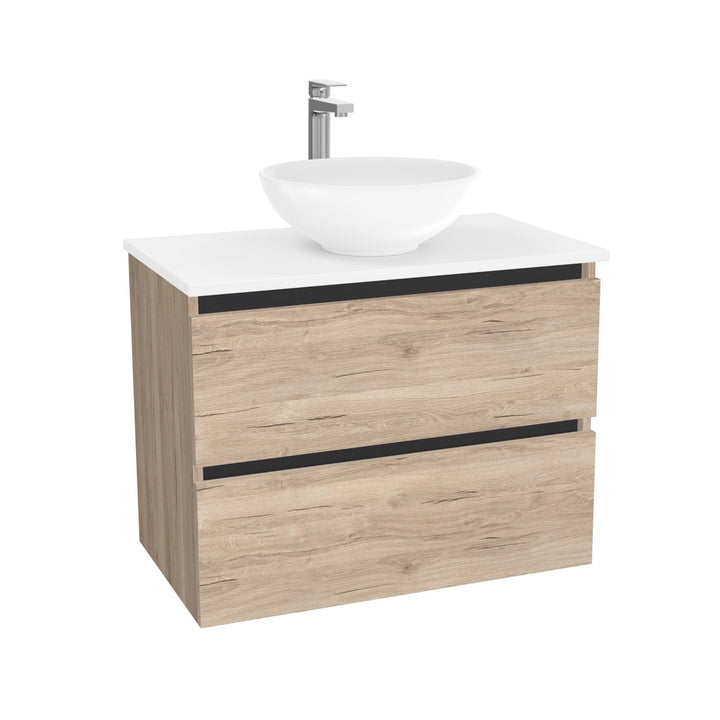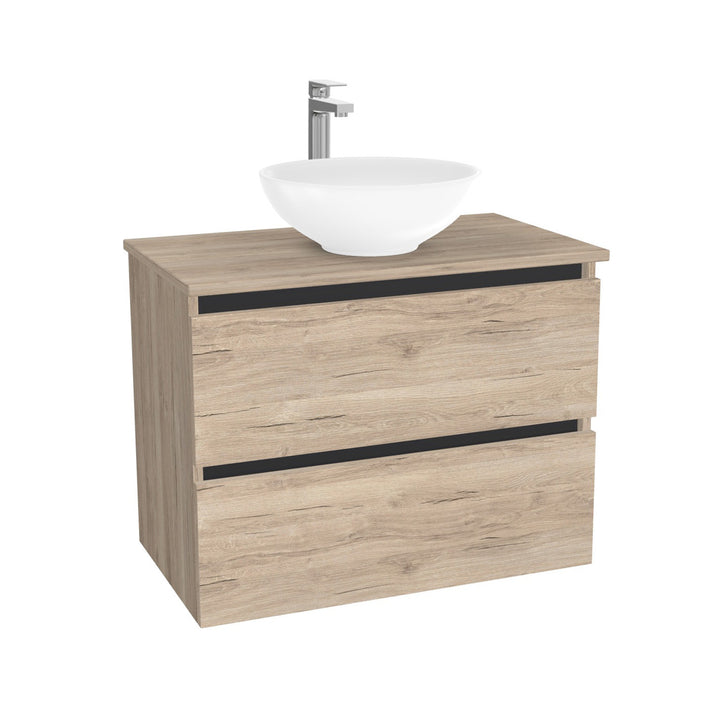 Bonn Badkamermeubel 80 cm Duitse Eik - Onderkast MDF - Softclose greeploos 2 lades Inclusief Toledo keramische waskom met wastafelblad