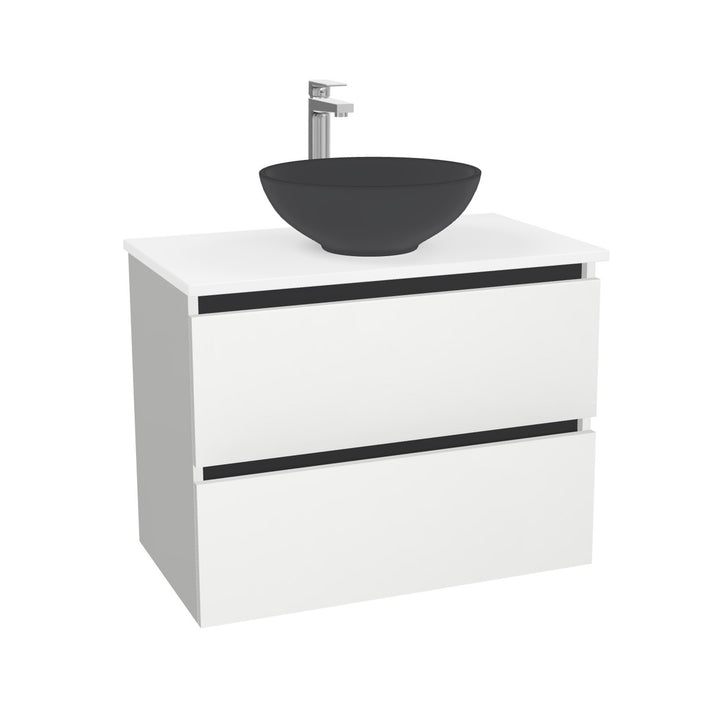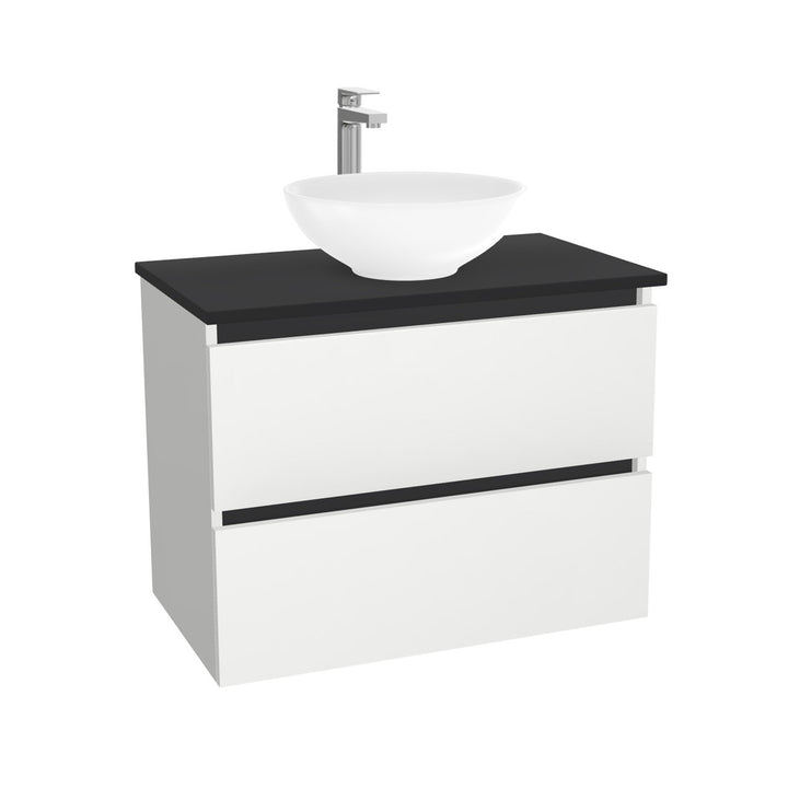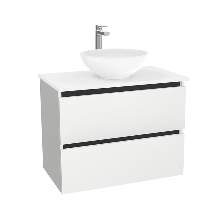 Bonn Badkamermeubel 80 cm Hoogglans Wit - Onderkast MDF - Softclose greeploos 2 lades Inclusief Toledo keramische waskom met wastafelblad