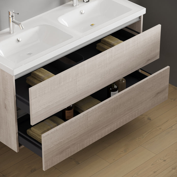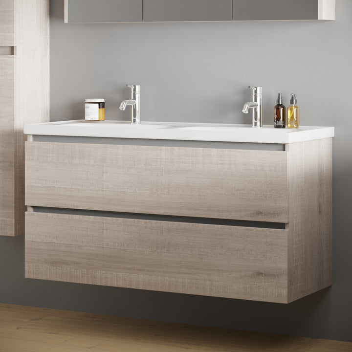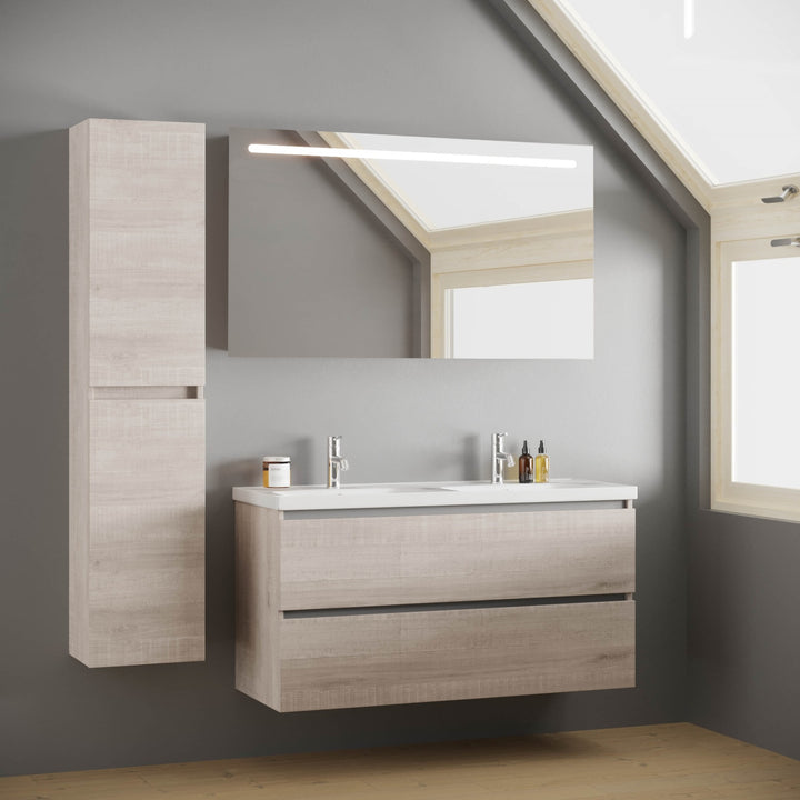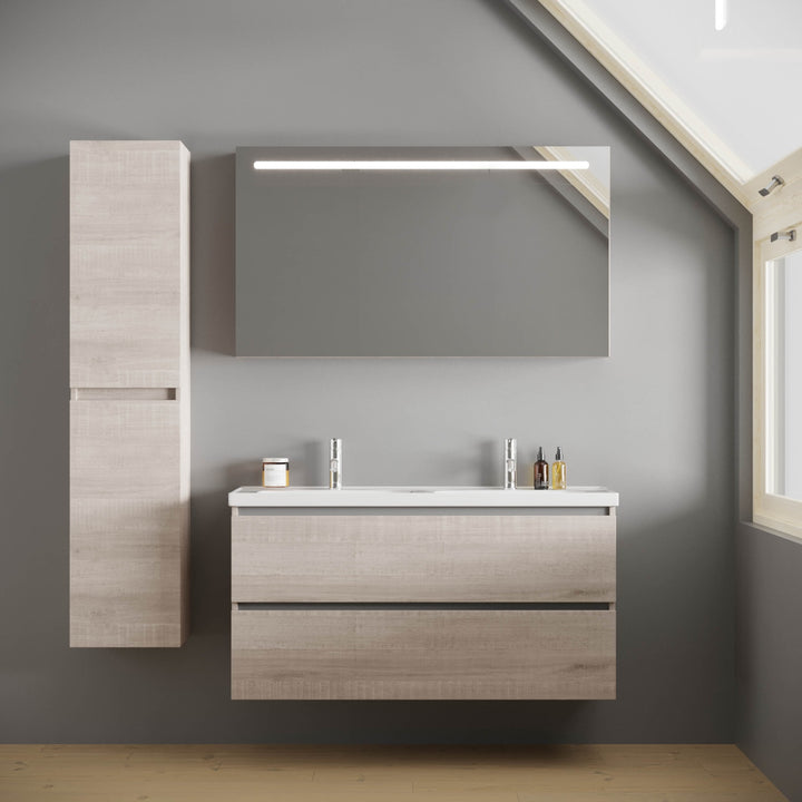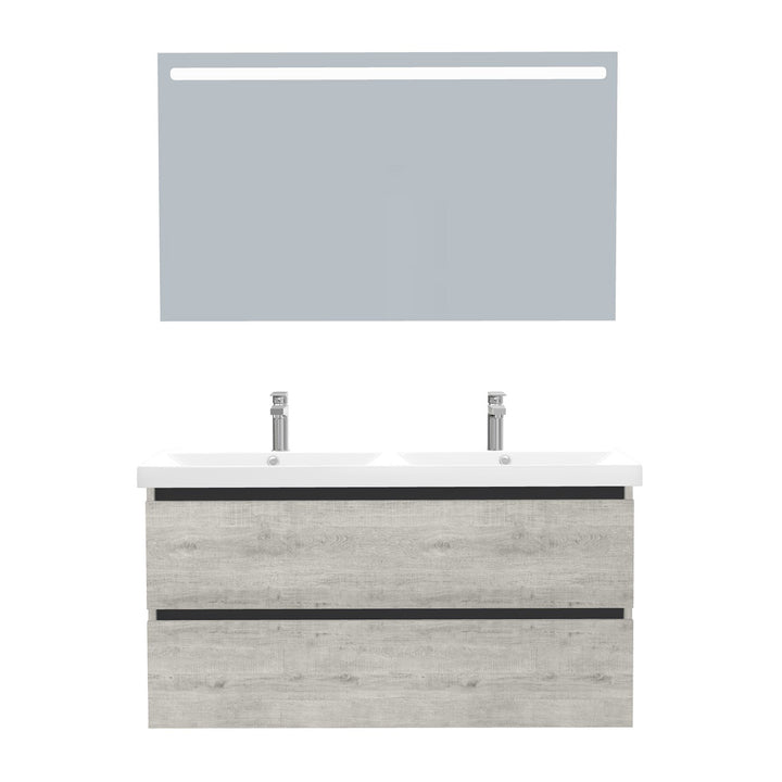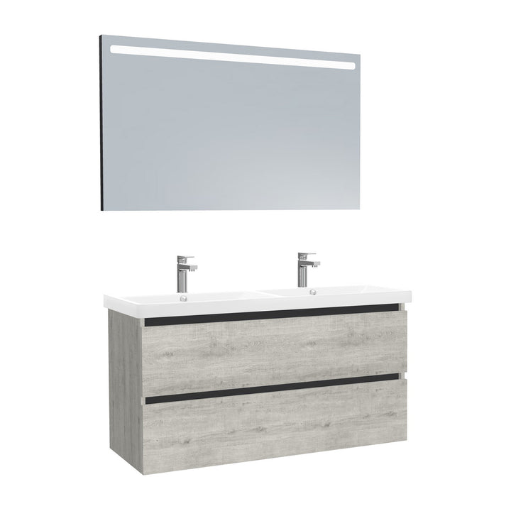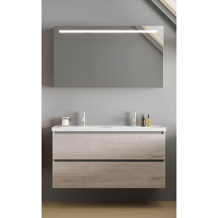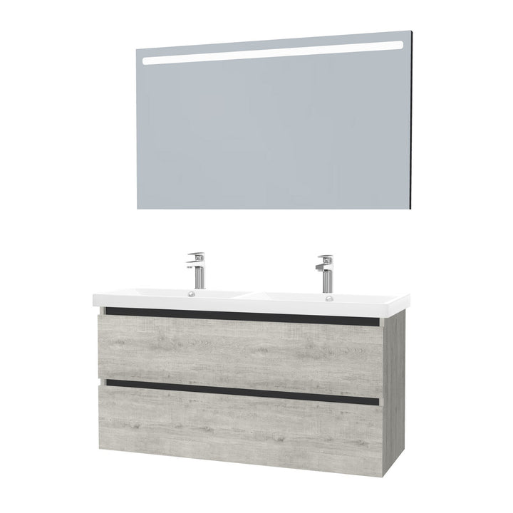 Bonn Badkamermeubel Set 120 cm Lissabon - Onderkast MDF Softclose Greeploos 2 lades met Keramische Wastafel 2 kraangat en Badkamerspiegel met Led-verlichting