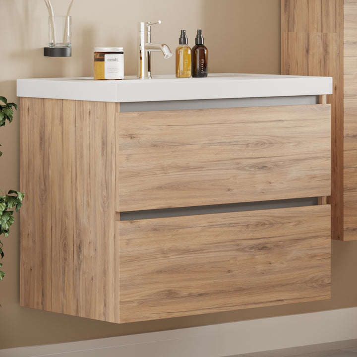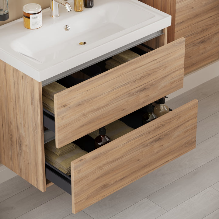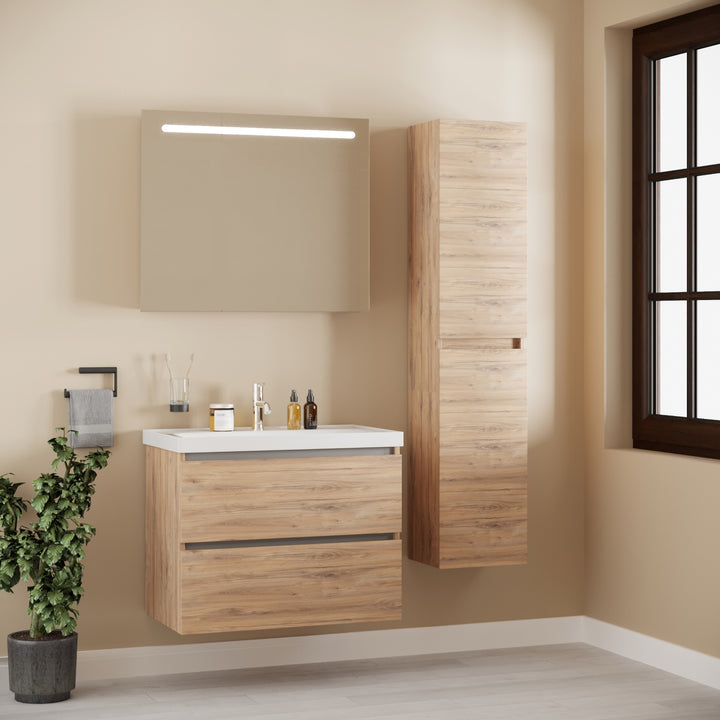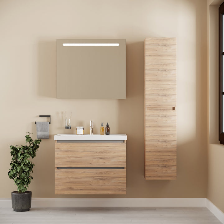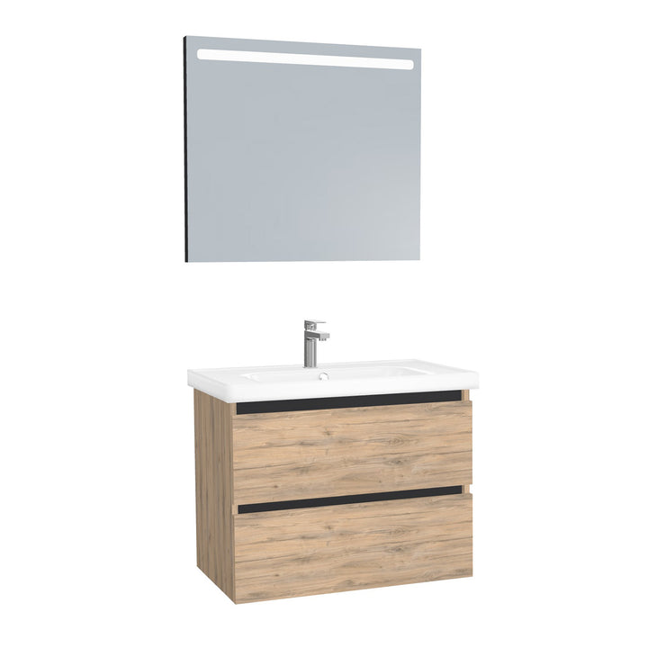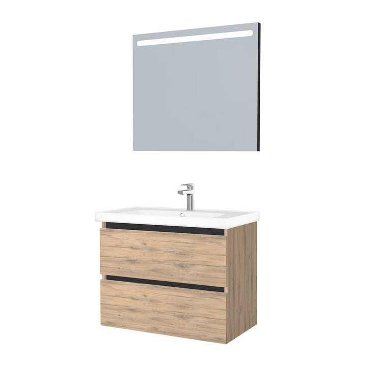 Bonn Badkamermeubel Set 80 cm Dorado - Onderkast MDF Softclose Greeploos 2 lades met Keramische Wastafel 1 kraangat en Badkamerspiegel met Led-verlichting