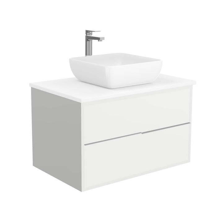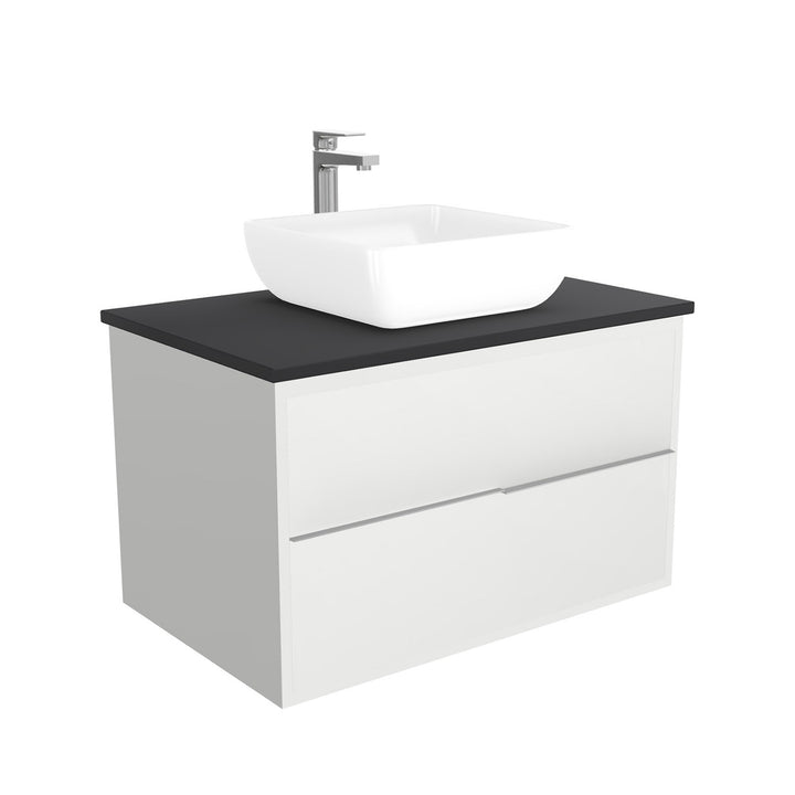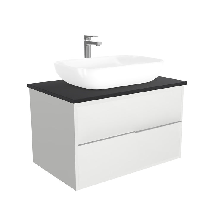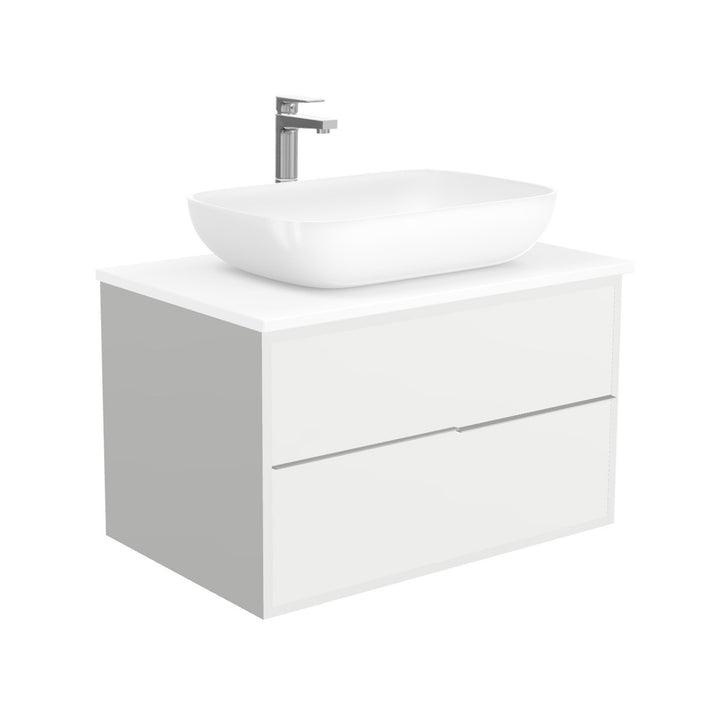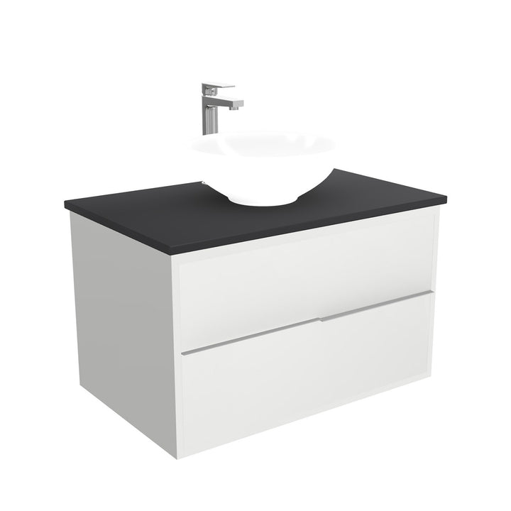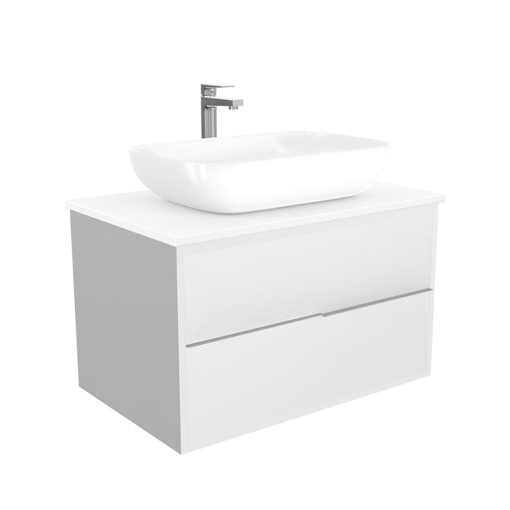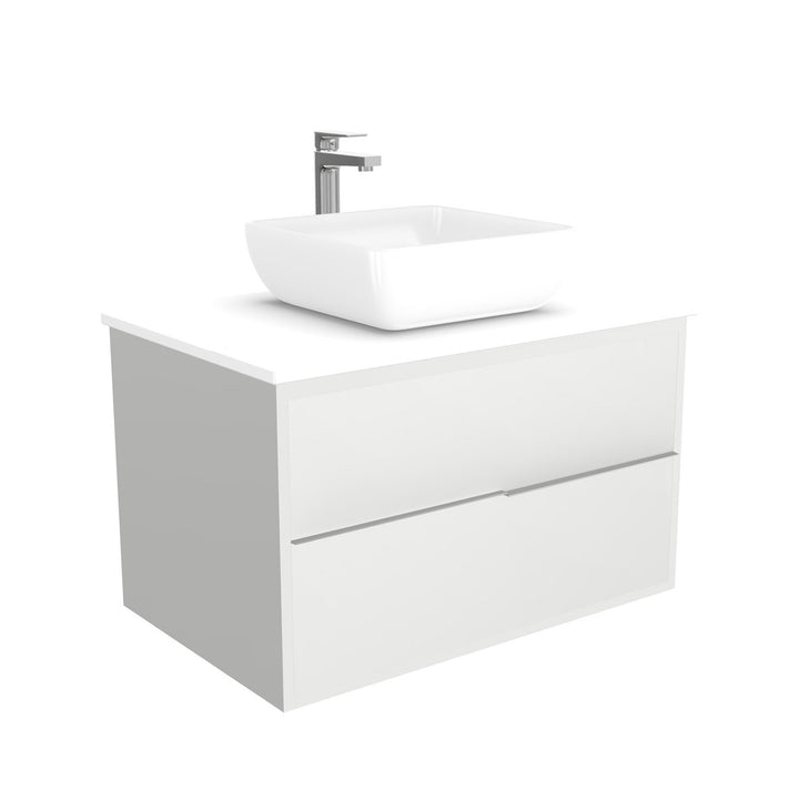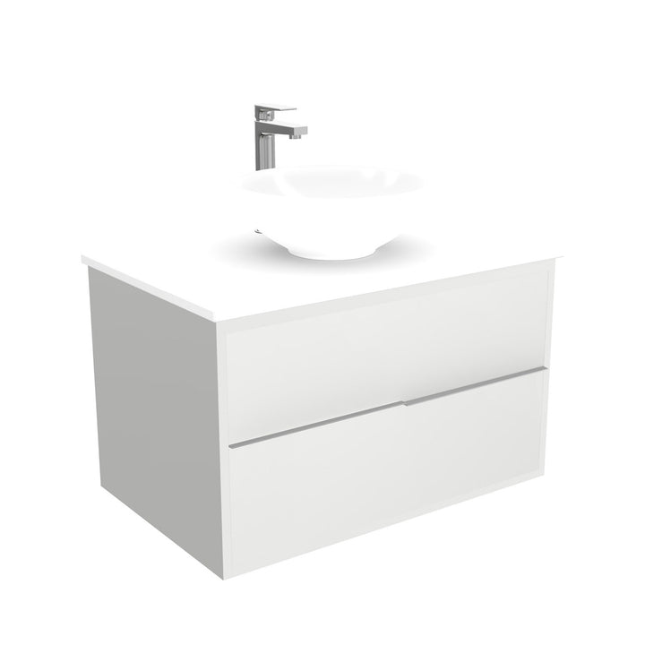 Essen Badkamermeubel 80 cm Hoogglans Wit - Onderkast MDF - Softclose semi handgreep 2 lades Inclusief keramische waskom met wastafelblad