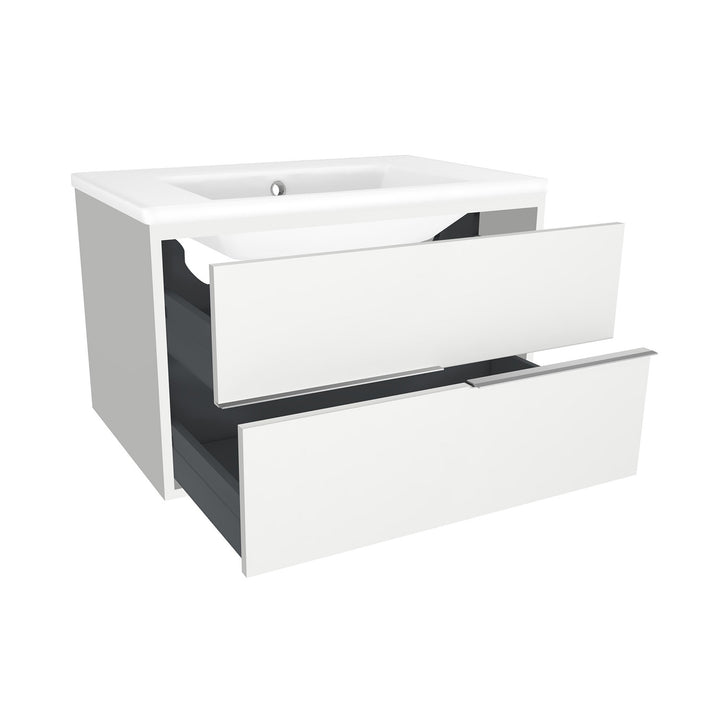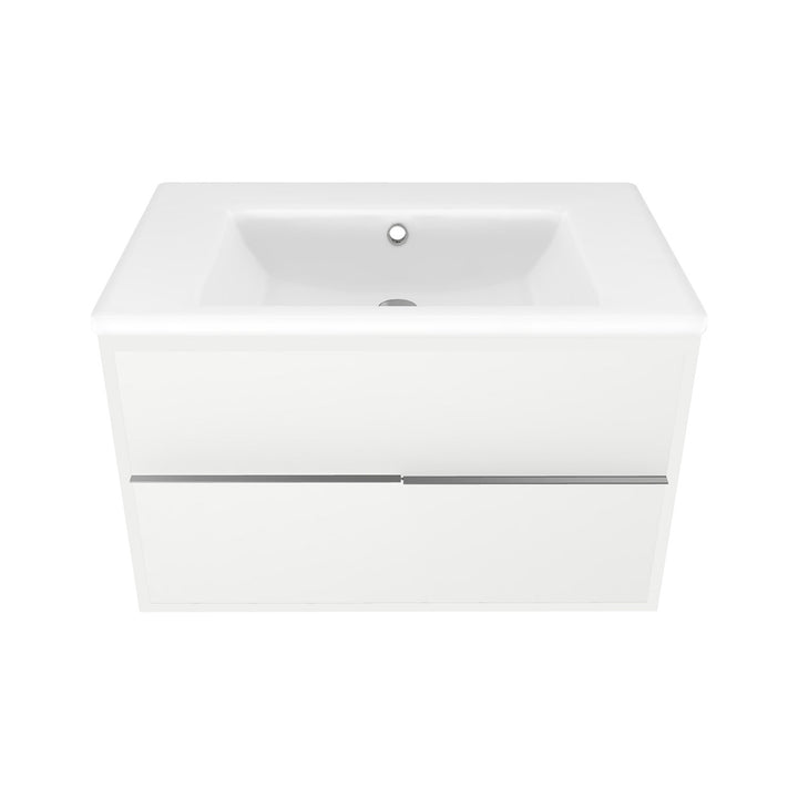 Essen 80 cm Hoogglans Wit - Onderkast MDF Softclose Semi handgreep 2 lades met Keramische Wastafel 1 kraangat - Wastafelmeubel Met Ibiza Wastafels