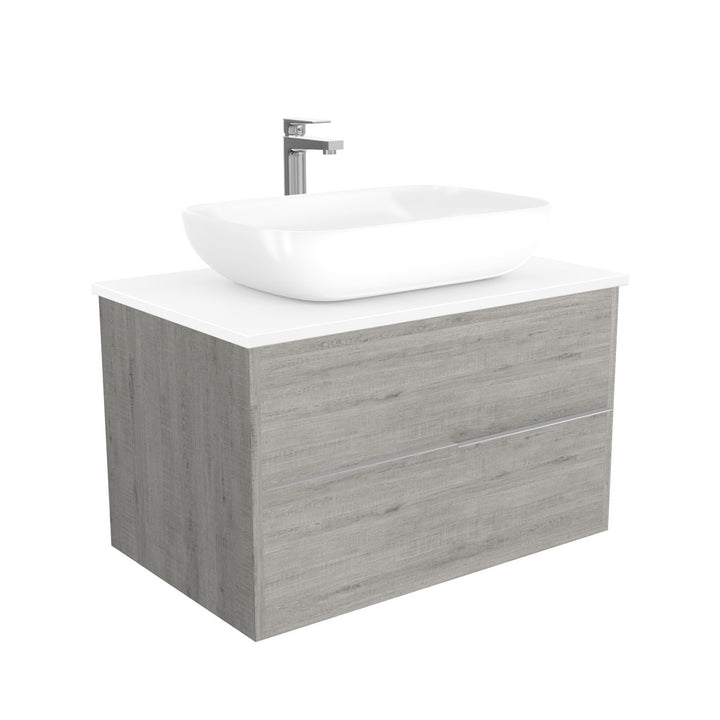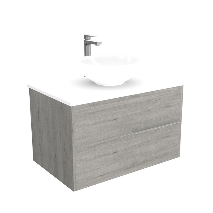 Essen Badkamermeubel 80 cm Lissabon - Onderkast MDF - Softclose semi handgreep 2 lades Inclusief keramische waskom met wastafelblad