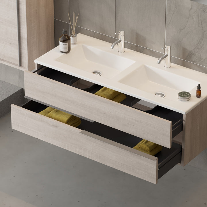 • Meubel volledig gemonteerd geleverd, wastafel afzonderlijk meegeleverd