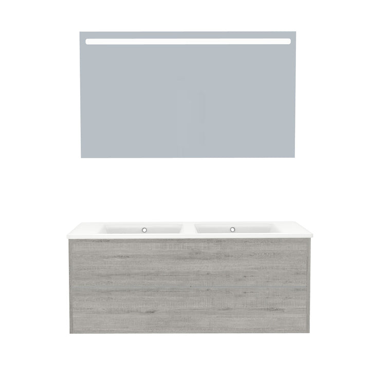 Essen Badkamermeubel Set 120 cm Lissabon - Onderkast MDF Softclose Semi handgreep 2 lades met Keramische Wastafel 1 kraangat en Badkamerspiegel met Led-verlichting