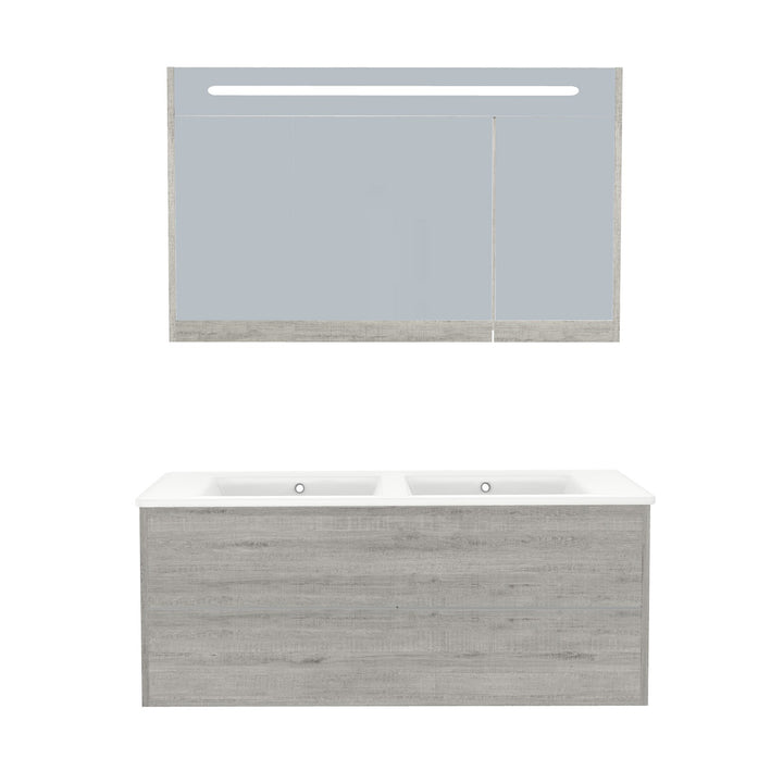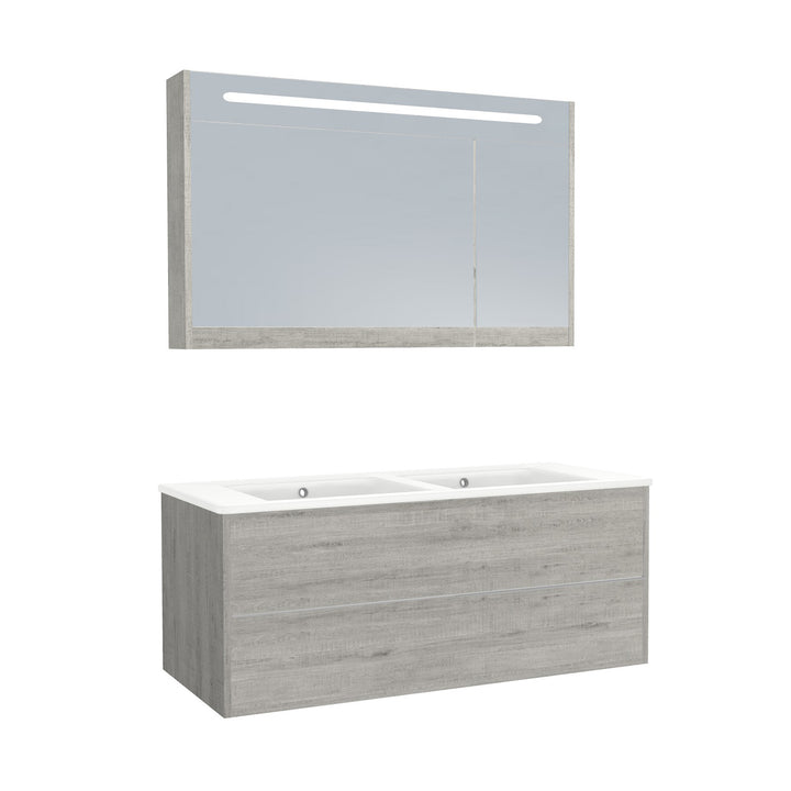 Essen Badkamermeubel Set 120 cm Lissabon - Onderkast MDF Softclose Semi handgreep 2 lades met Keramische Wastafel 1 kraangat en Badkamerspiegelkast met Led-verlichting