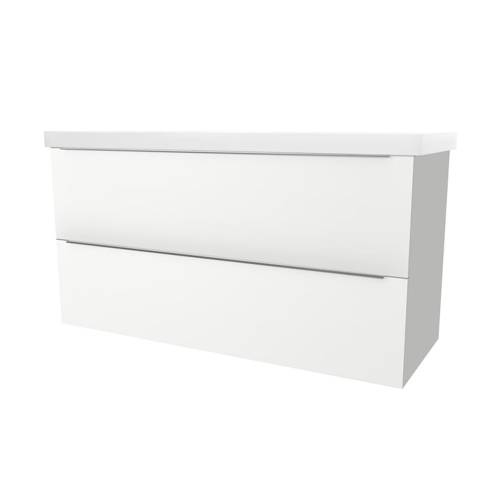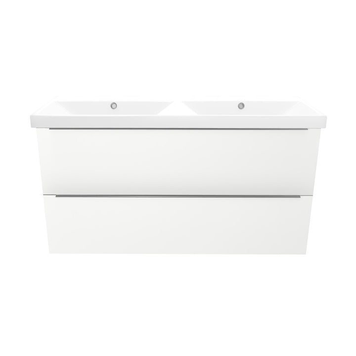 Frankfurt 120 cm Hoogglans Wit - Onderkast MDF Softclose Semi handgreep 2 lades met Keramische Wastafel 2 kraangat - Wastafelmeubel Met Elite Wastafels