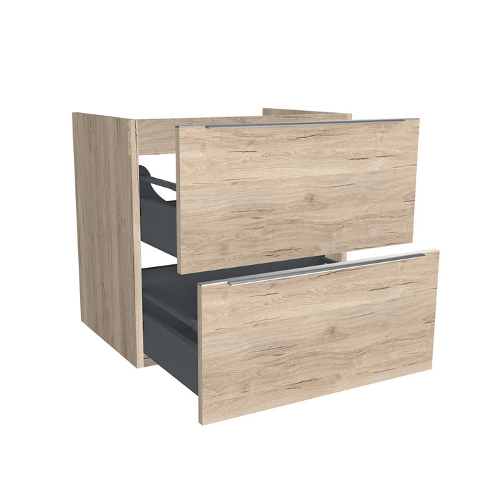 Frankfurt 65 cm Duitse Eik - Onderkast MDF - Softclose Semi handgreep 2 Lades Onder Elkaar - Wastafelmeubel Voor Waskom