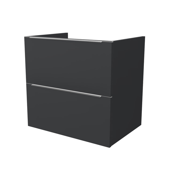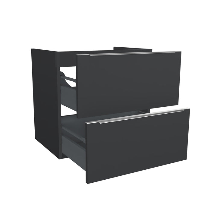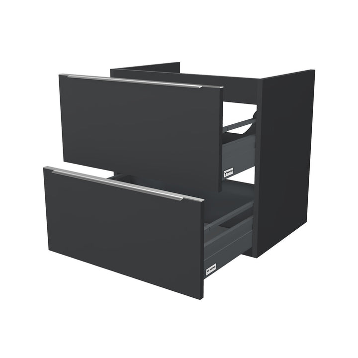 Frankfurt 65 cm Mat Zwart - Onderkast MDF - Softclose Semi handgreep 2 Lades Onder Elkaar - Wastafelmeubel Voor Waskom