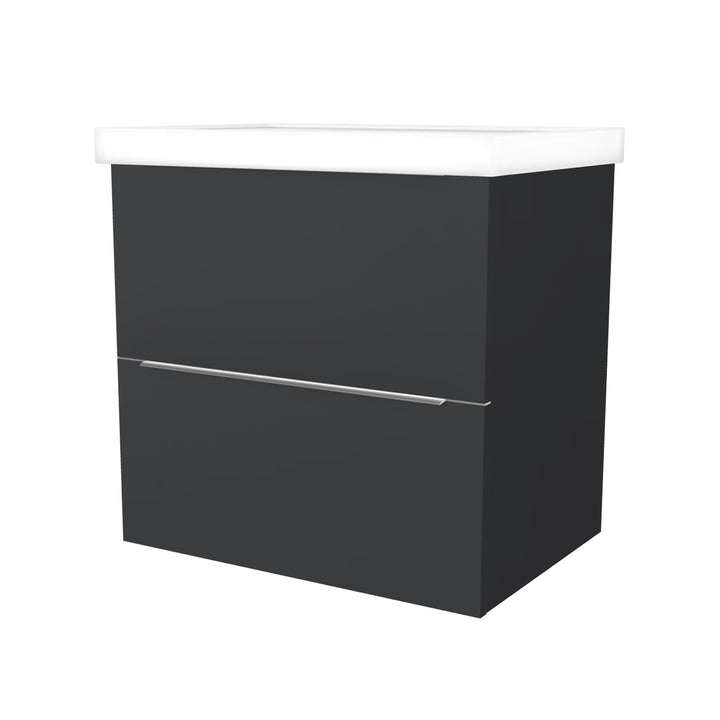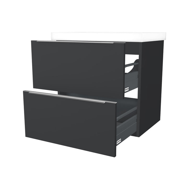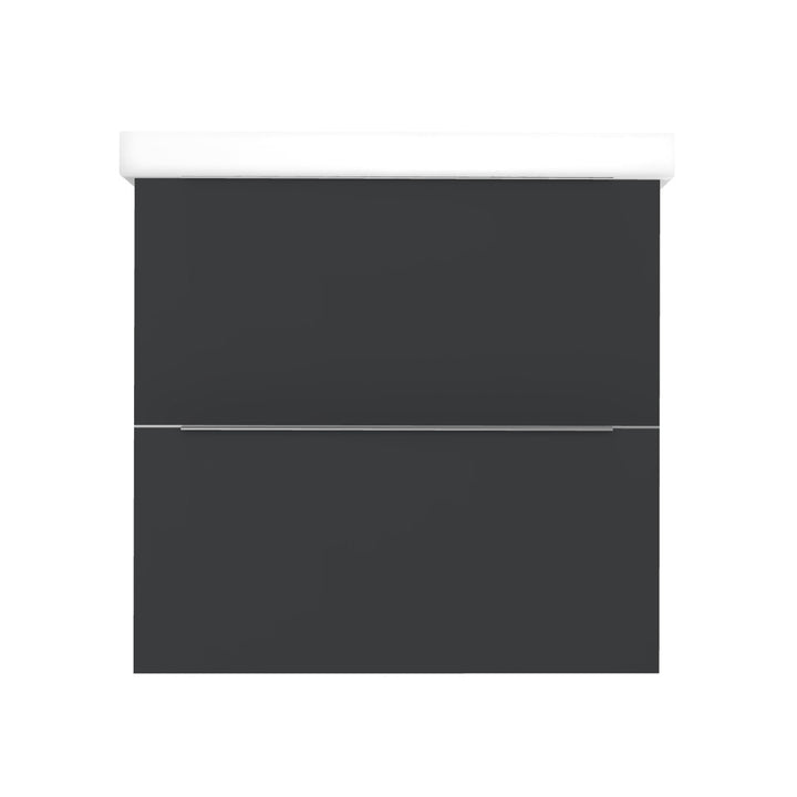 Frankfurt 65 cm Mat Zwart - Onderkast MDF Softclose Semi handgreep 2 lades met Keramische Wastafel 1 kraangat - Wastafelmeubel Met Frame Wastafels