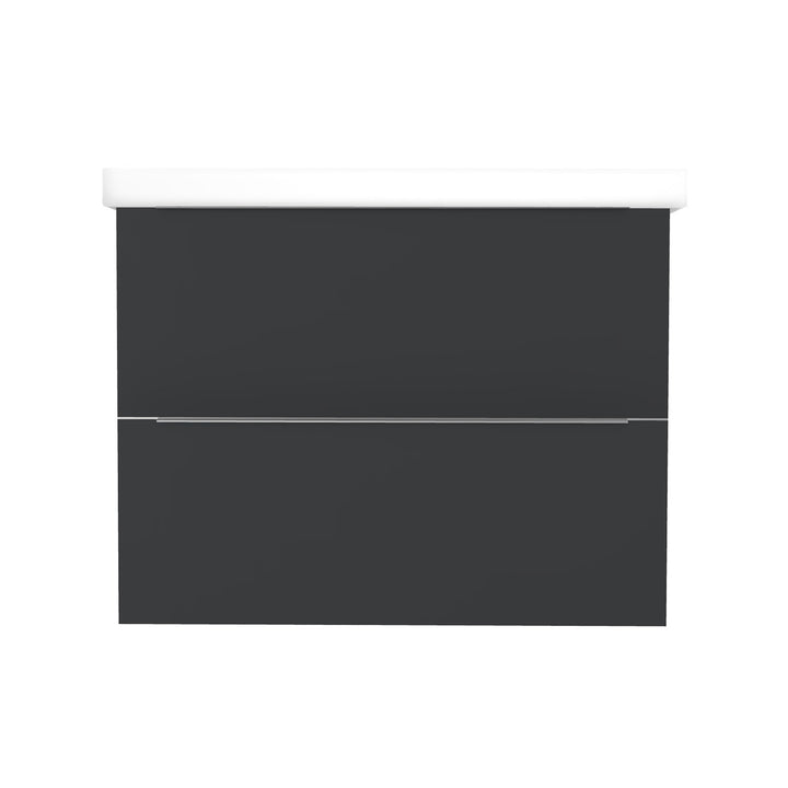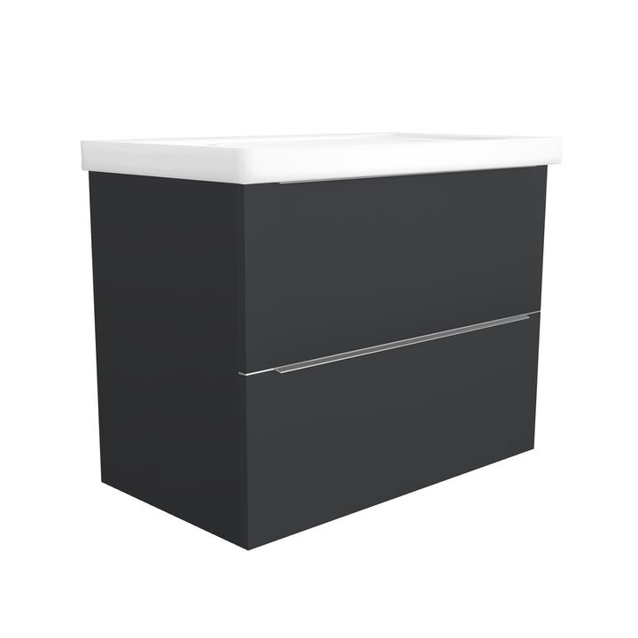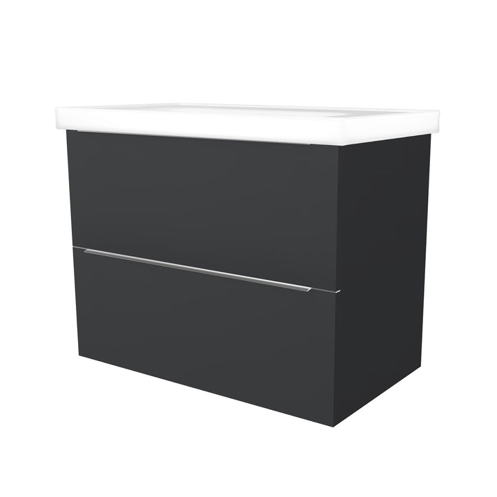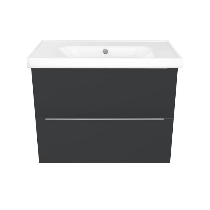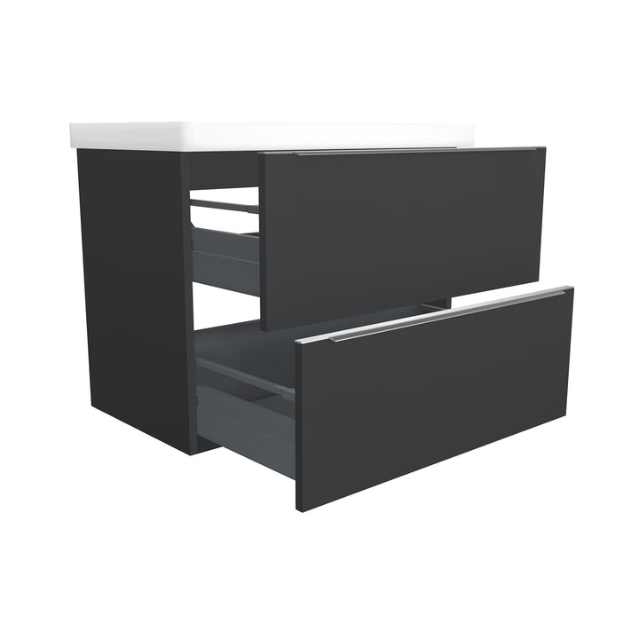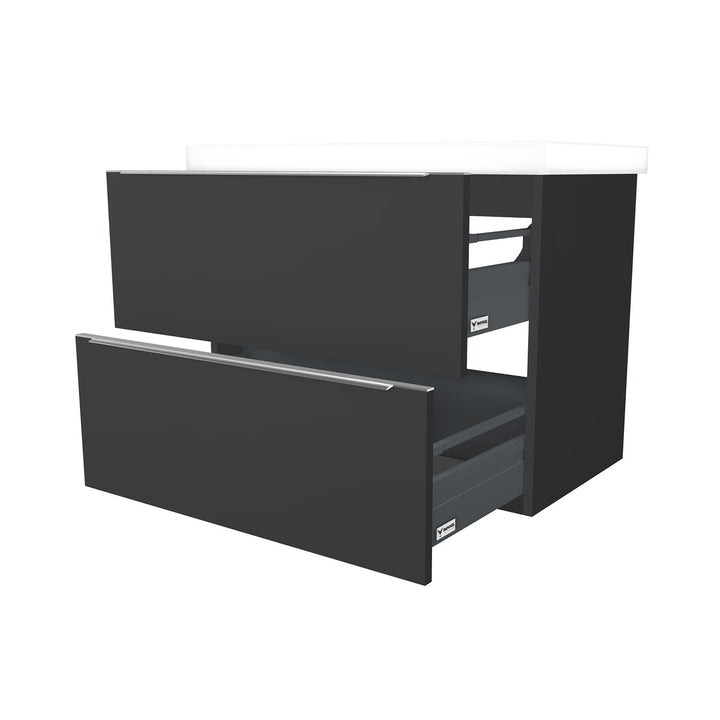 Frankfurt 80 cm Mat Zwart - Onderkast MDF Softclose Semi handgreep 2 lades met Keramische Wastafel 1 kraangat - Wastafelmeubel Met Frame Wastafels