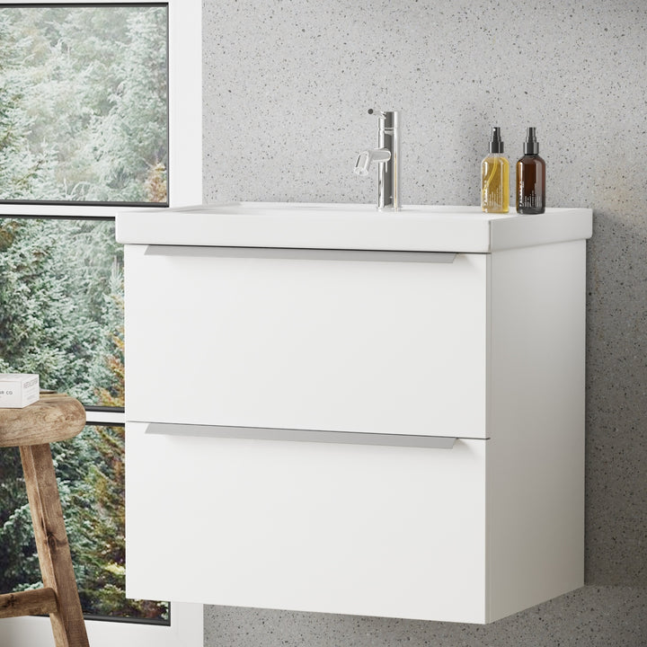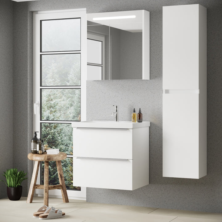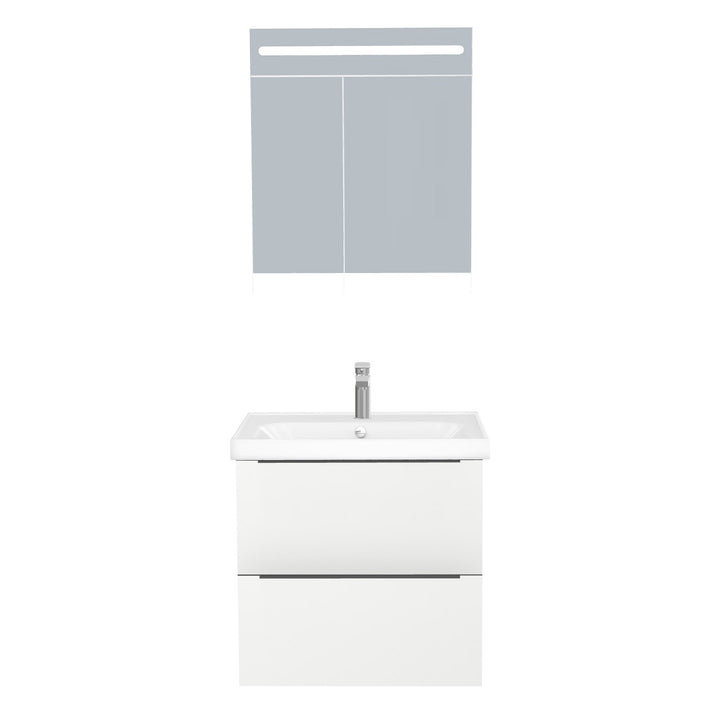 Frankfurt Badkamermeubel Set 65 cm Hoogglans Wit - Onderkast MDF Softclose Semi handgreep 2 lades met Keramische Wastafel 1 kraangat en Badkamerspiegelkast met Led-verlichting