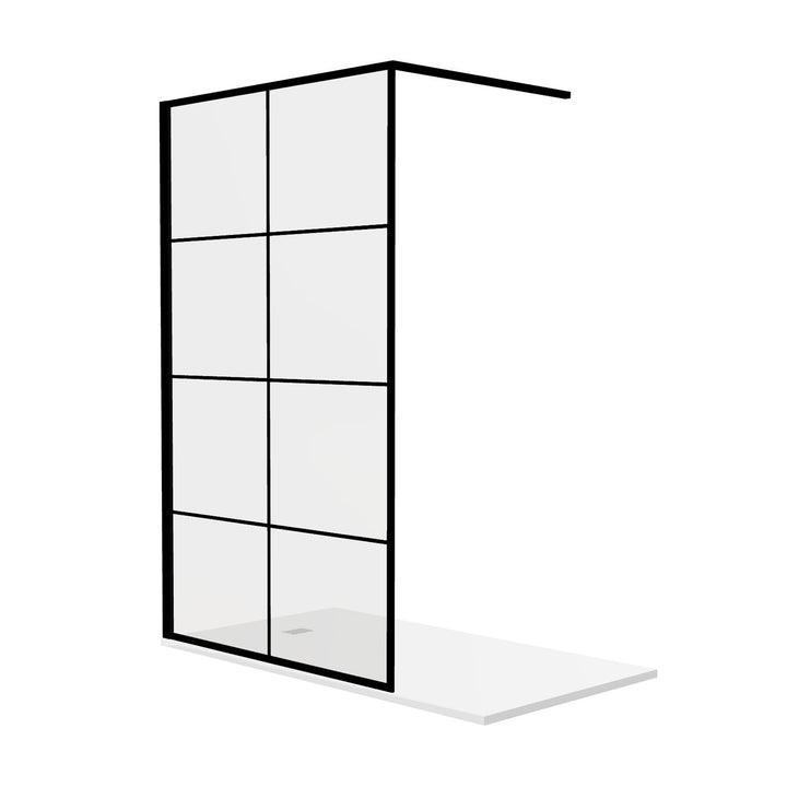Mieke Inloopdouche 120 cm Mat Zwart Raster Douchewand Industrieel 8 mm Veiligheidsglas anti-kalk Aliminium Profiel