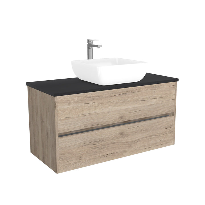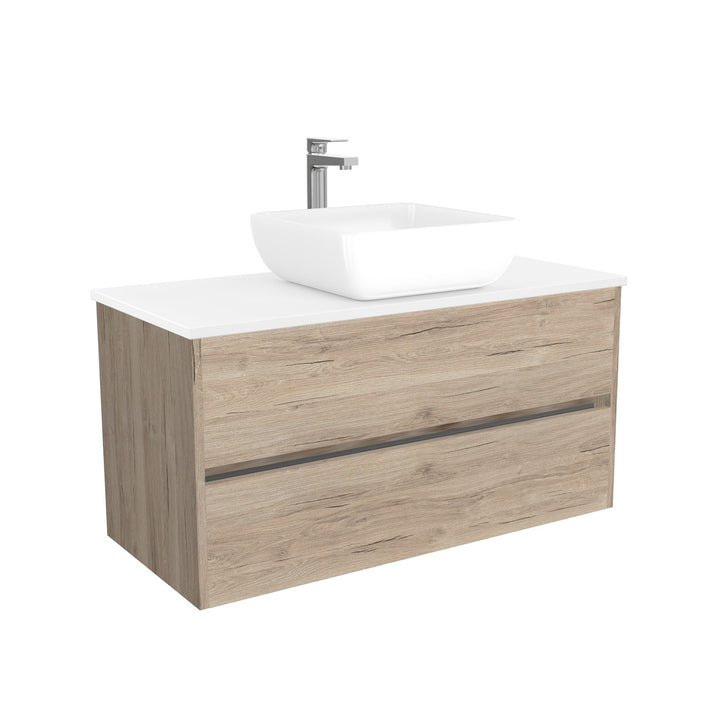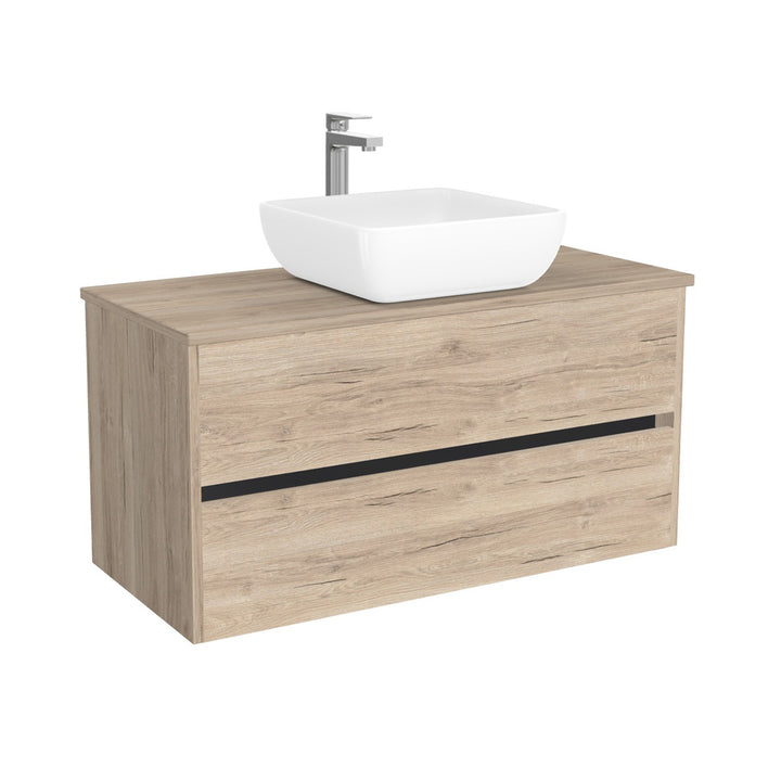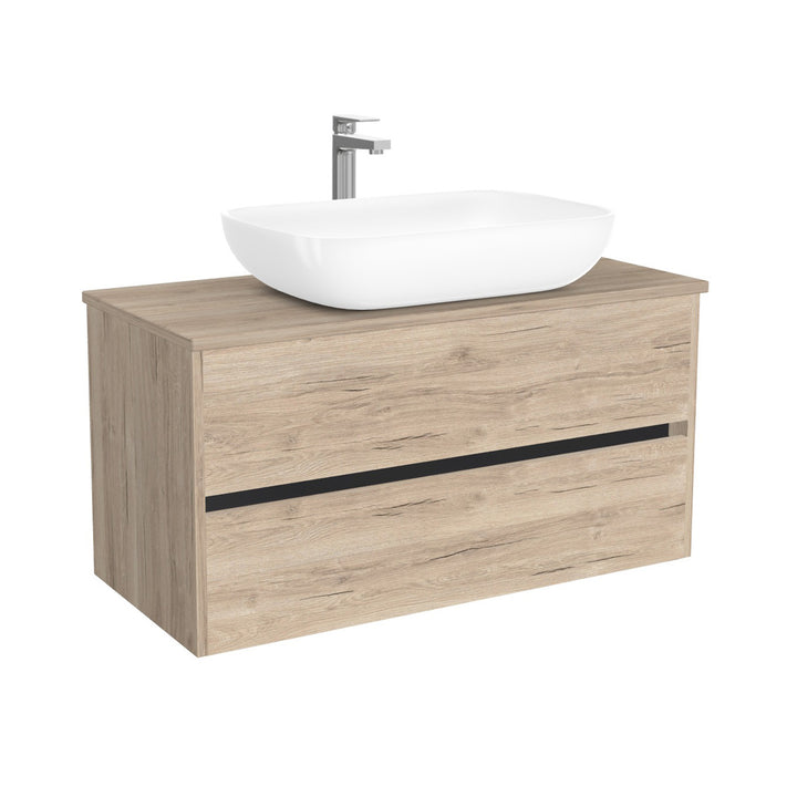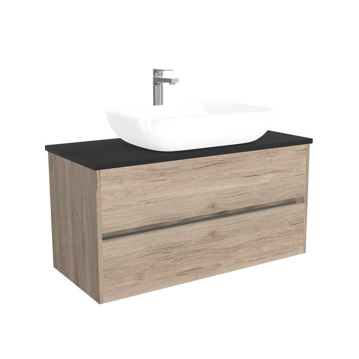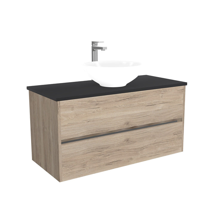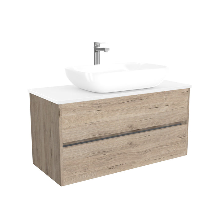 Jena Badkamermeubel 100 cm Duitse Eik - Onderkast MDF - Softclose greeploos 2 lades Inclusief keramische waskom met wastafelblad
