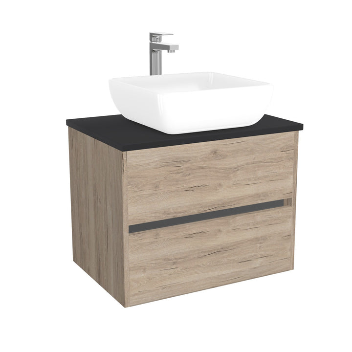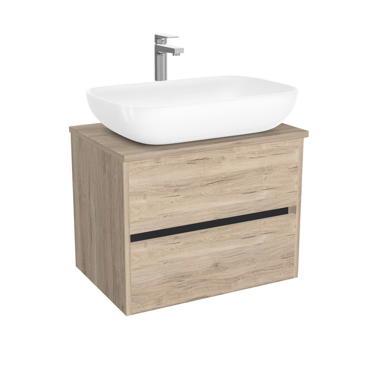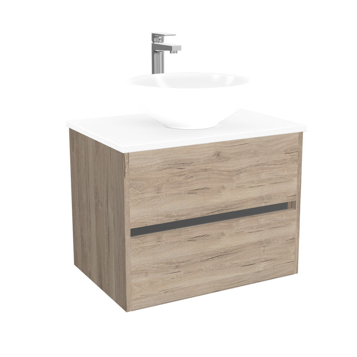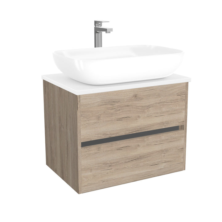 Jena Badkamermeubel 65 cm Duitse Eik - Onderkast MDF - Softclose greeploos 2 lades Inclusief keramische waskom met wastafelblad