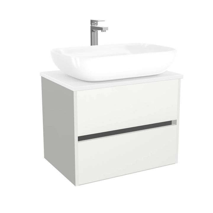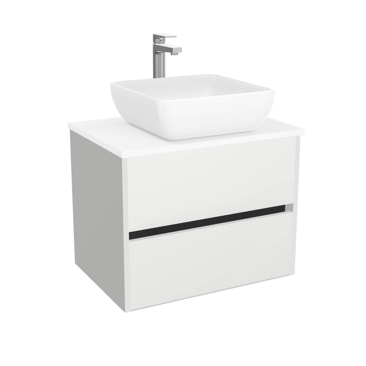 Jena Badkamermeubel 65 cm Hoogglans Wit - Onderkast MDF - Softclose greeploos 2 lades Inclusief keramische waskom met wastafelblad