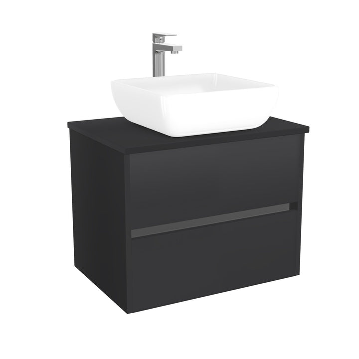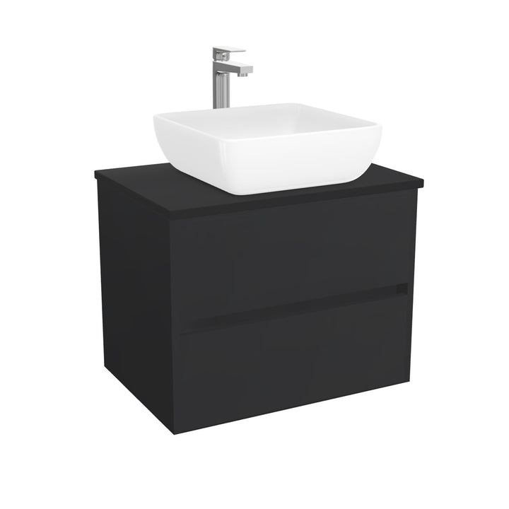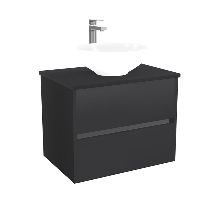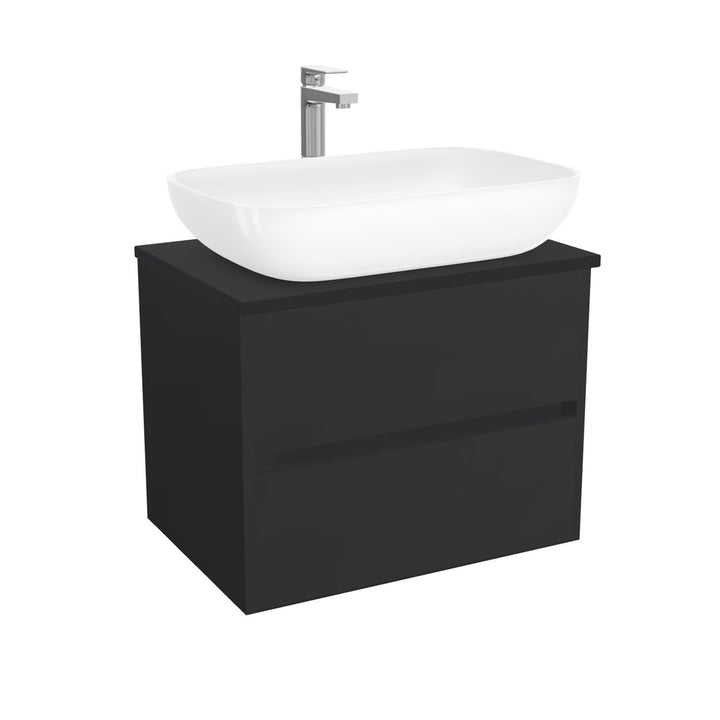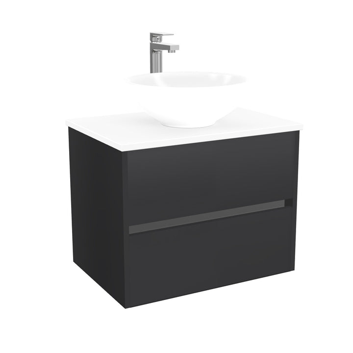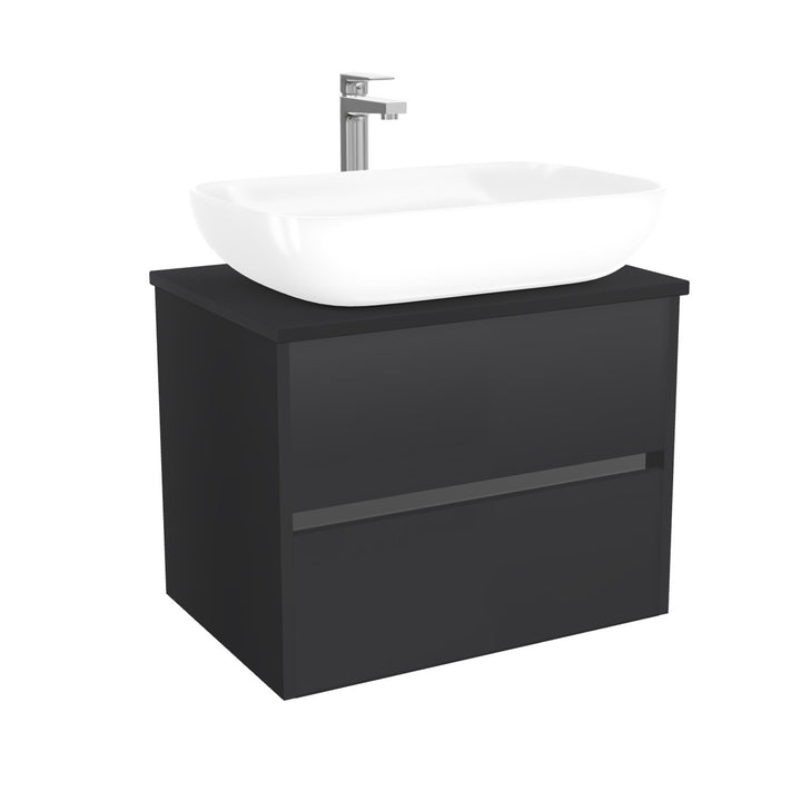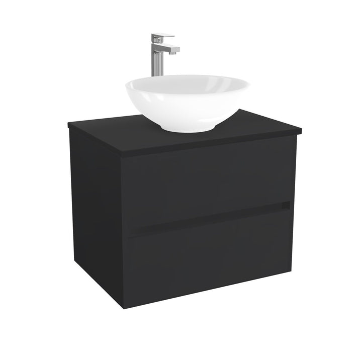 Jena Badkamermeubel 65 cm Mat Zwart - Onderkast MDF - Softclose greeploos 2 lades Inclusief keramische waskom met wastafelblad