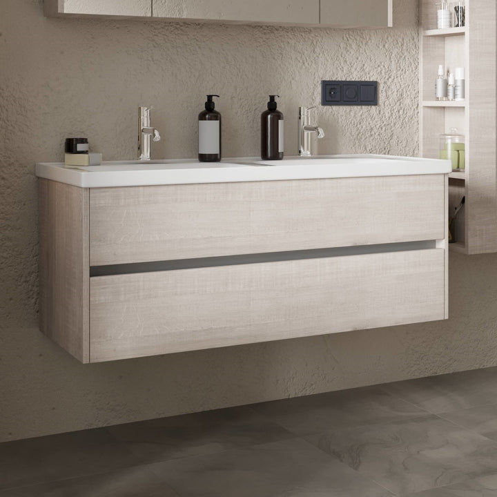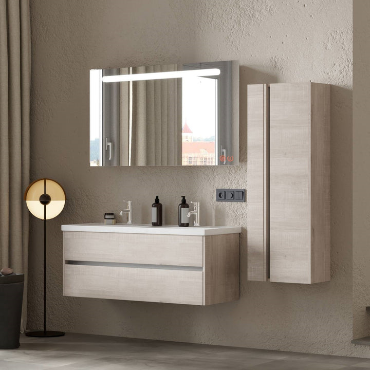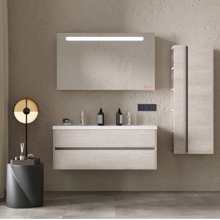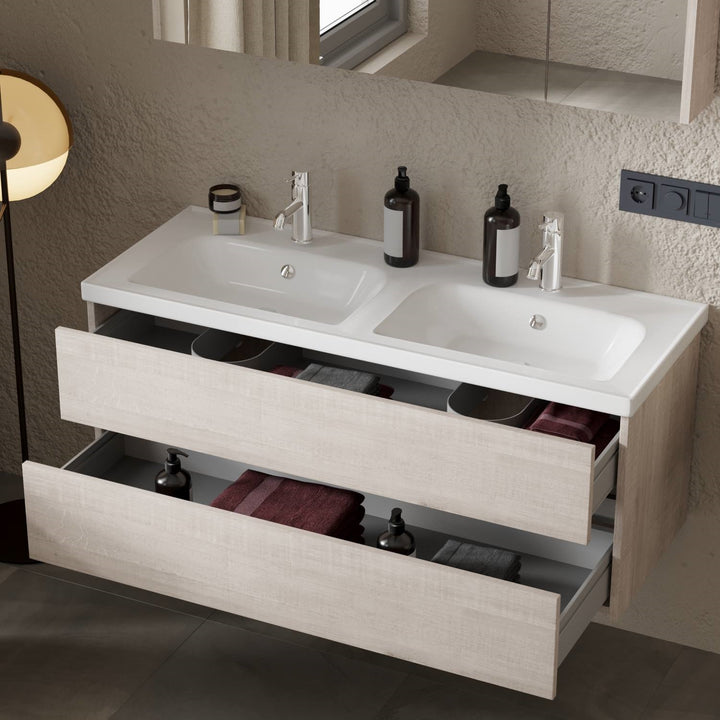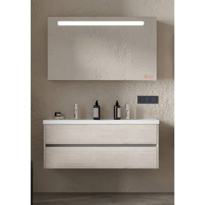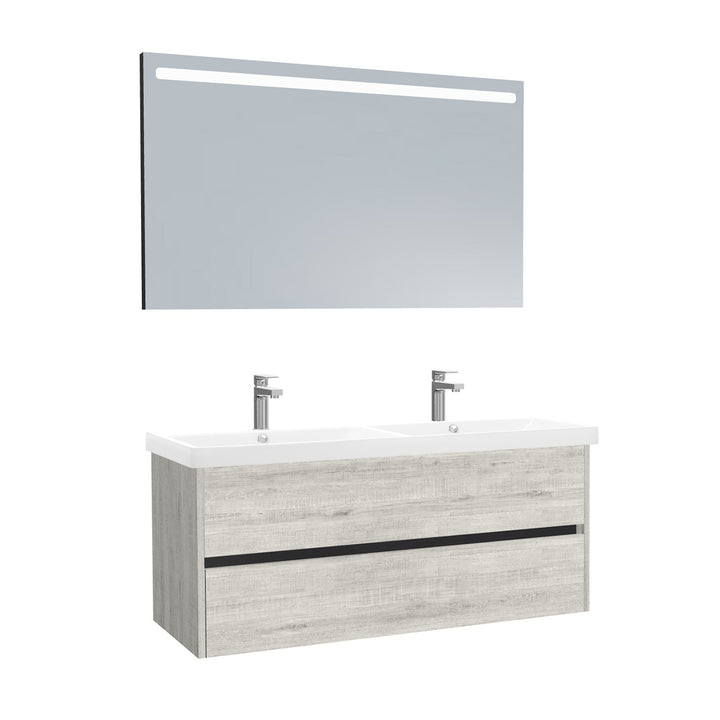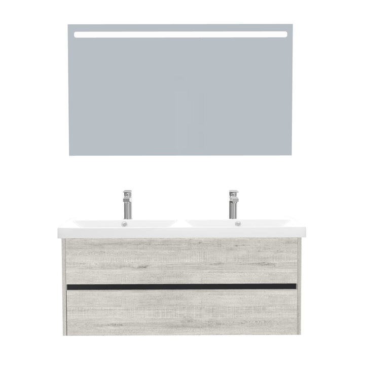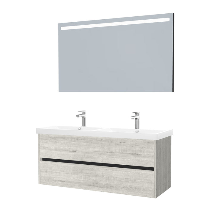 Jena Badkamermeubel Set 120 cm Lissabon - Onderkast MDF Softclose Greeploos 2 lades met Keramische Wastafel 2 kraangat en Badkamerspiegel met Led-verlichting
