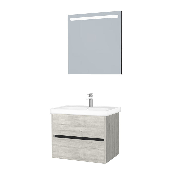 Jena Badkamermeubel Set 65 cm Lissabon - Onderkast MDF Softclose Greeploos 2 lades met Keramische Wastafel 1 kraangat en Badkamerspiegel met Led-verlichting