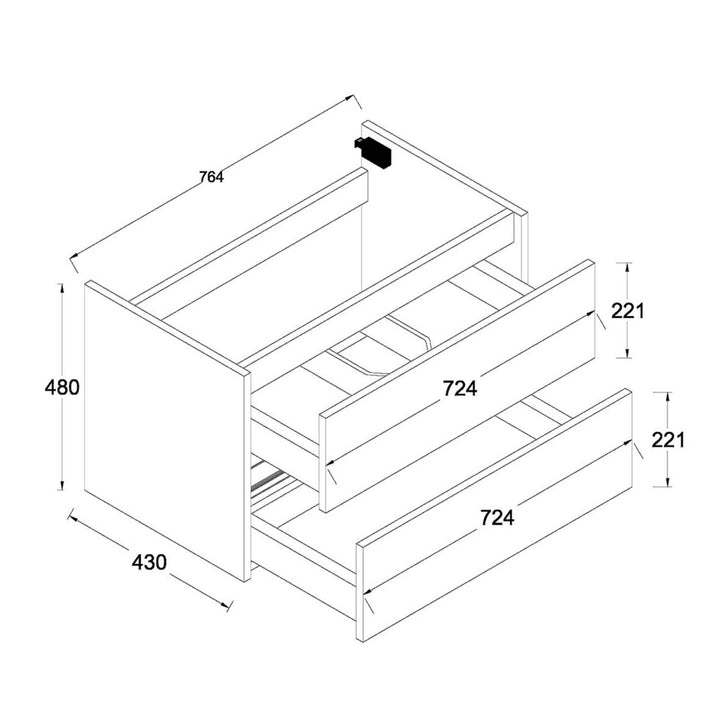 • Meubel volledig gemonteerd geleverd, wastafel afzonderlijk meegeleverd