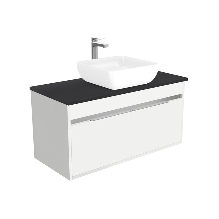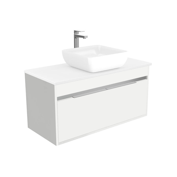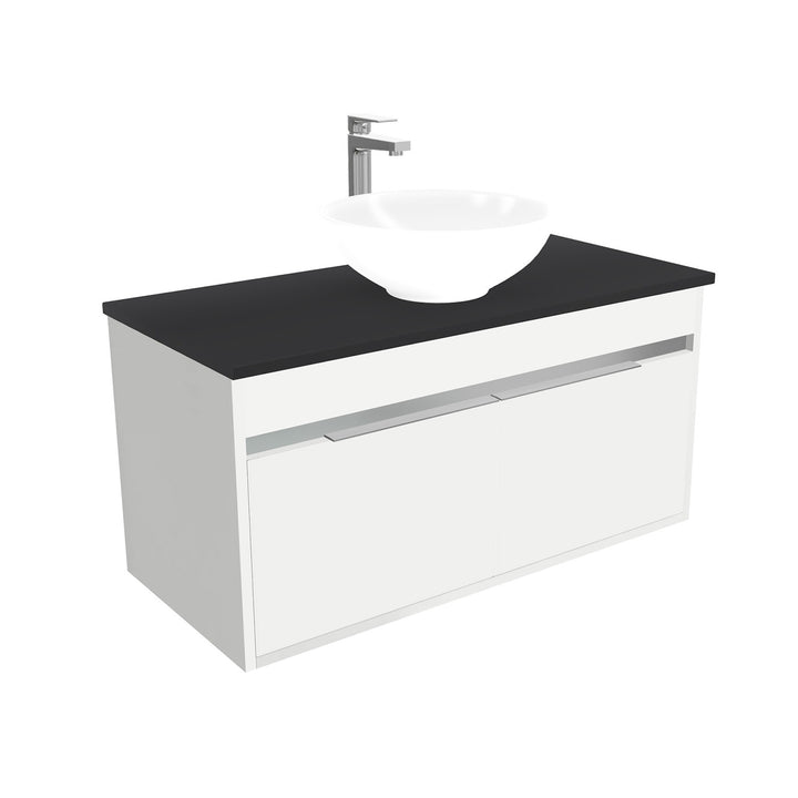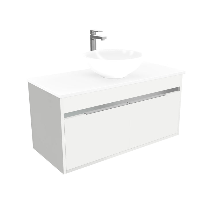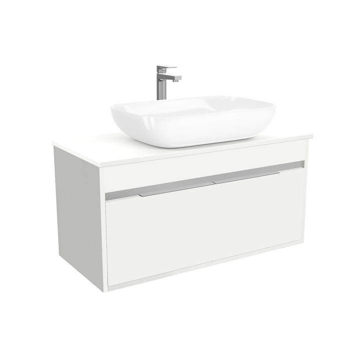Kassel Badkamermeubel 100 cm Hoogglans Wit - Onderkast MDF - Softclose semi handgreep 2 deuren Inclusief keramische waskom met wastafelblad
